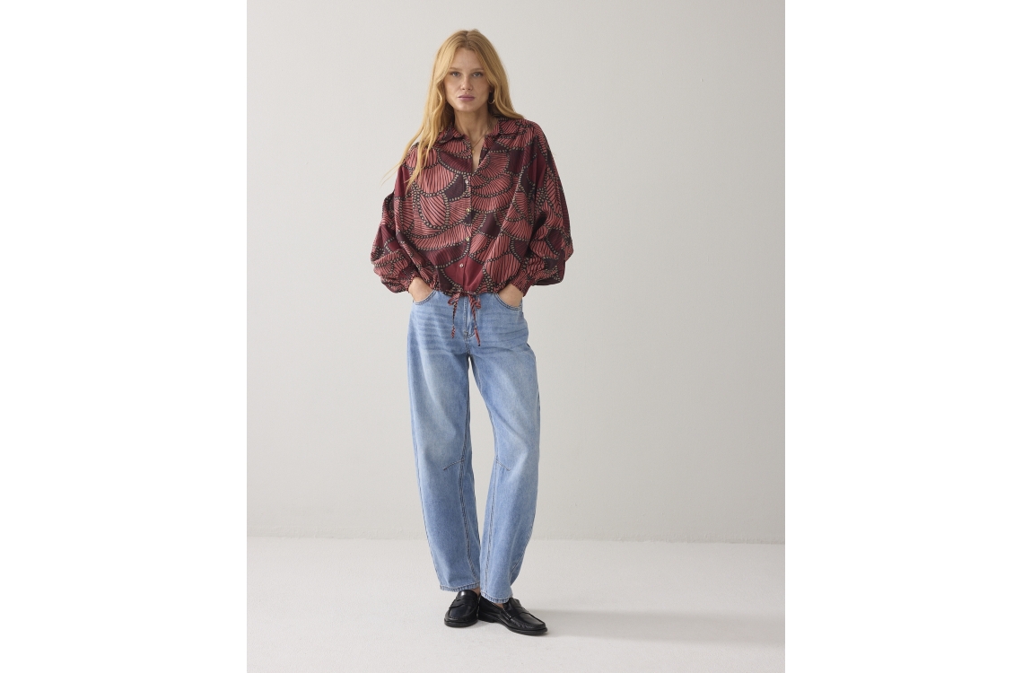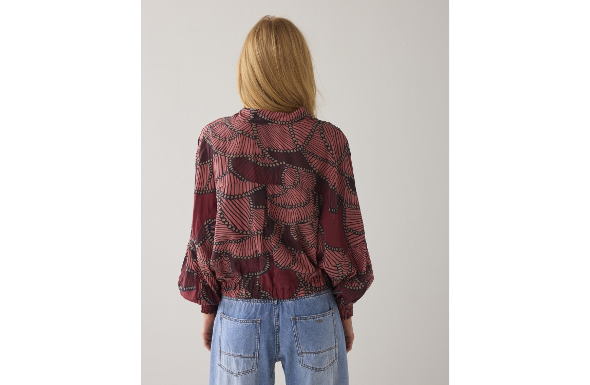 Summum Woman Blouse All over print 120 Multicolour. Dit soepelvallende model is voorzien van een kraag en heeft lange mouwen. Deze rode blouse van Summum sluit door middel van knopen en een trekkoord aan de onderkant. Dit model is all-over bewerkt met een print.