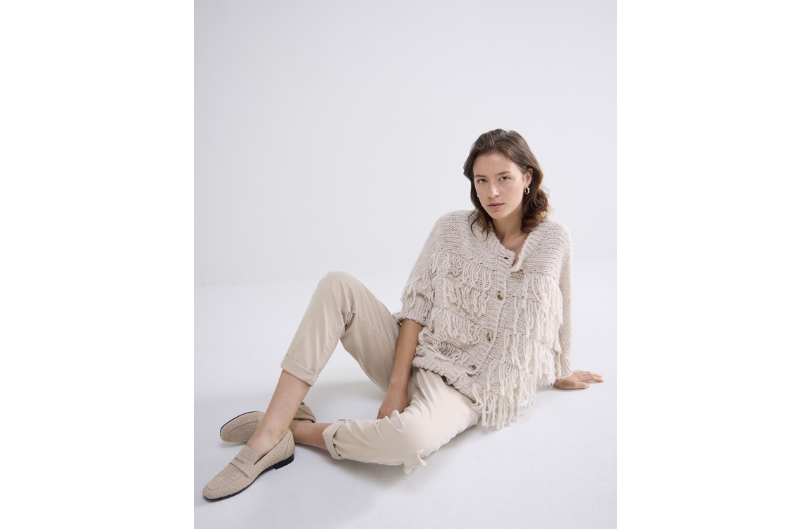 • Summum Woman Cardigan 3/4 sleeve fringe knit 122 Ivory