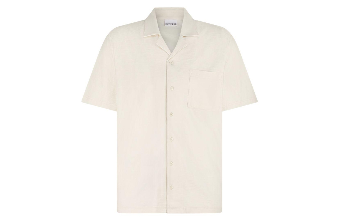 Supply & Co Ewerton SCO26108EW15. Dit rechtvallend model is voorzien van een reverskraag en heeft korte mouwen. Deze gebroken witte overhemd van Supply & Co sluit door middel van knopen en is afgewerkt met een borstzak.