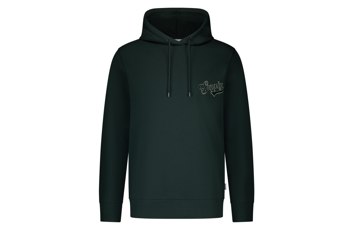 Supply en Co Holden Hoody 0083318 Seaweed. Dit rechtvallende model heeft een capuchon en lange mouwen. Deze donker groene hoody van Supply en Co is afgewerkt met boorden.