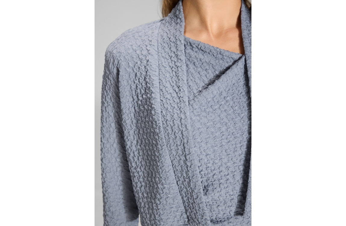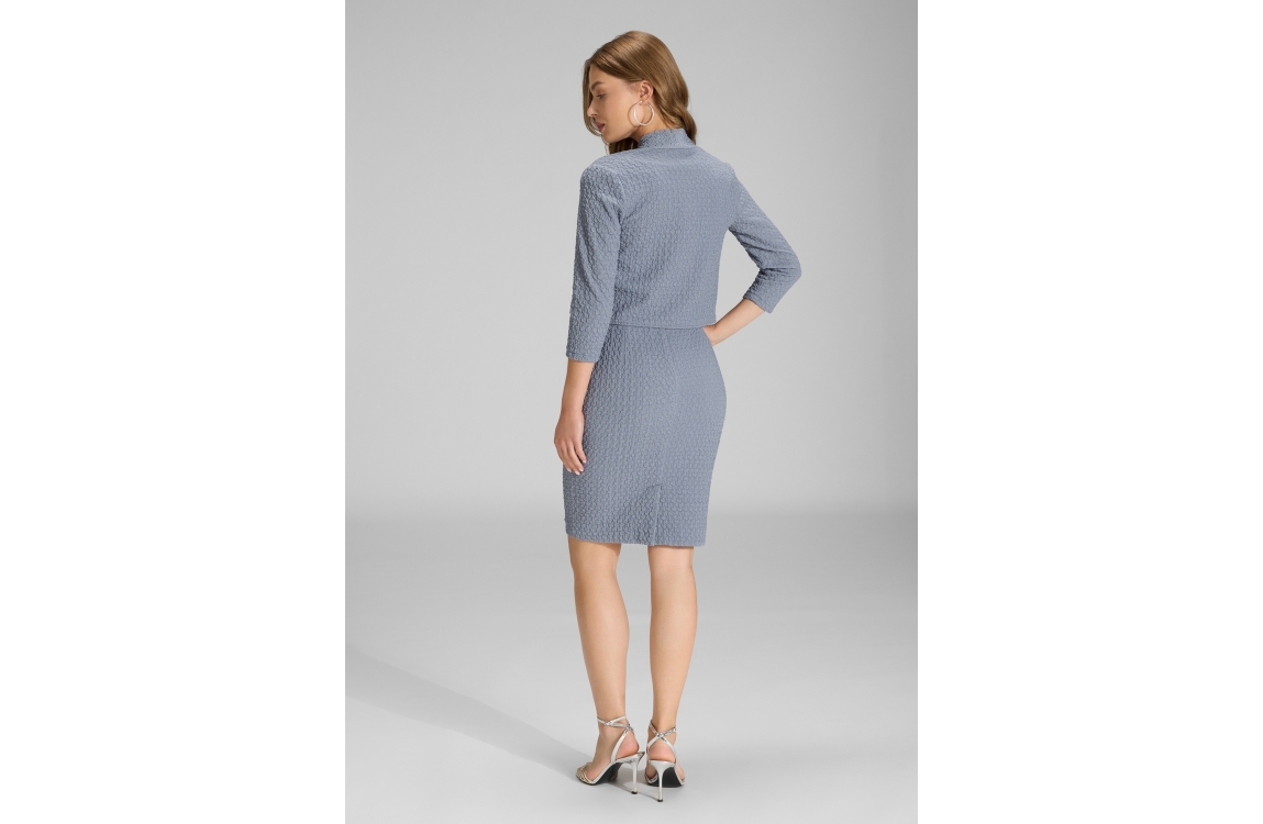 Swing bolero 1AK00300. Dit rechtvallend model heeft een ronde hals en driekwart mouwen. Deze blauwe bolero van Swing is uitgevoerd in een gestructureerd materiaal.