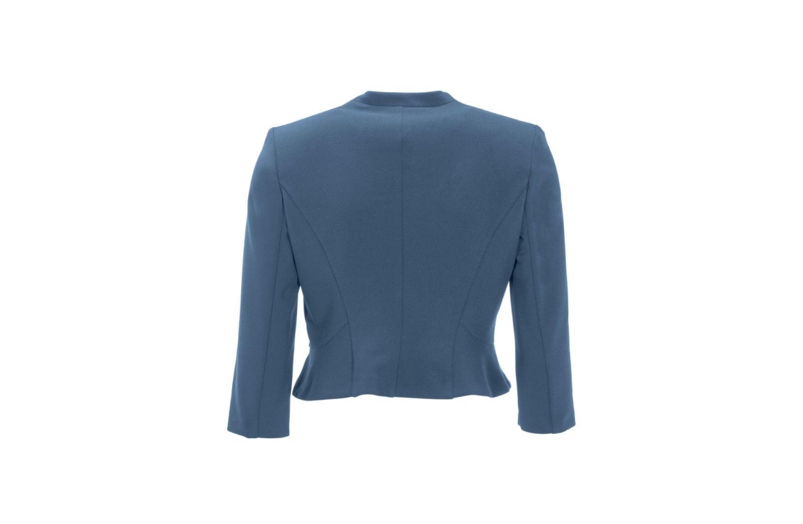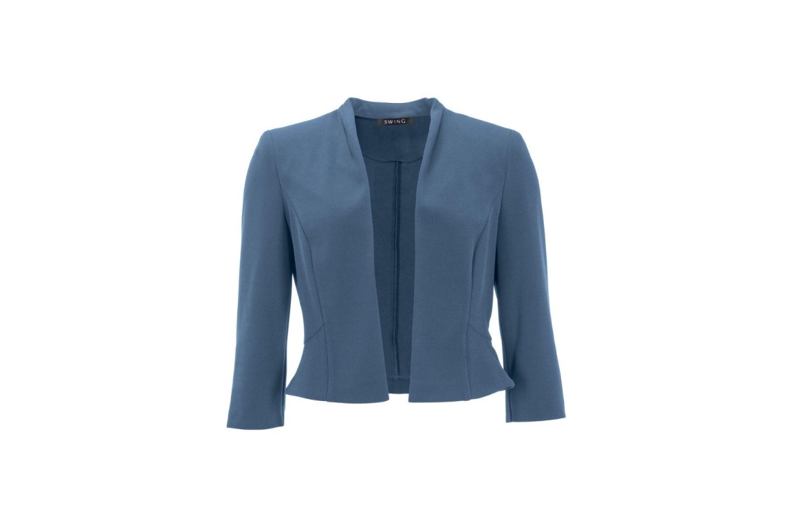 Swing jasje 4AF01800. Dit rechtvallend model is voorzien van een ronde hals en heeft driekwart mouwen. Dit blauwe jasje van Swing is openvallend en beschikt over schoudervulling.