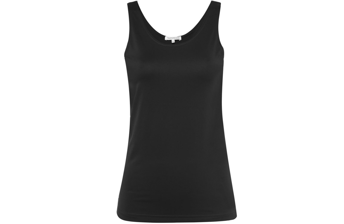 Tramontana hemd Pia. Dit aangesloten model is voorzien van een ronde hals en is mouwloos. Dit zwarte hemd van Tramontana is uitgevoerd in een gladde elastische kwaliteit en is een mooi basis item!