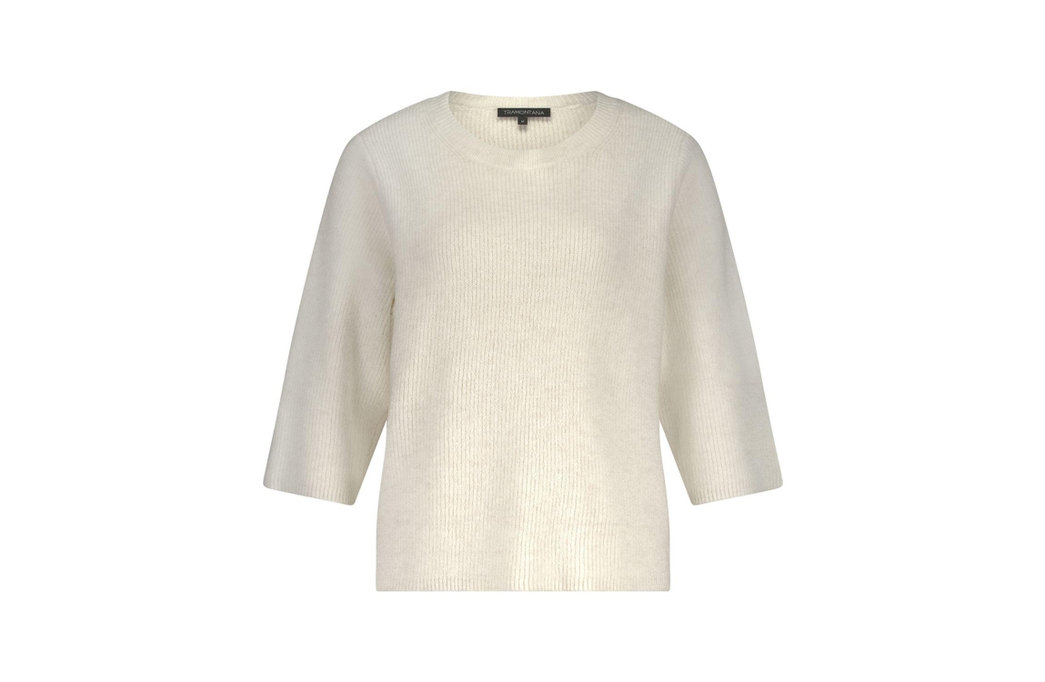 Tramontana Boucl Jumper 006801 Stone melange. Dit rechtvallende model is voorzien van een ronde hals en driekwart mouwen. Deze off-white trui van Tramontana is een zachte, comfortabele trui.