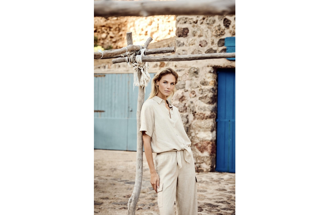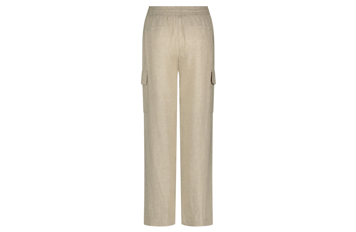 Tramontana cargo broek C02-16-101. Dit straight fit model sluit door middel van een elastische boord. Deze zandkleurige broek van Tramontana beschikt over twee steek- en klepzakken aan de voorzijde en twee paspelzakken aan de achterzijde.