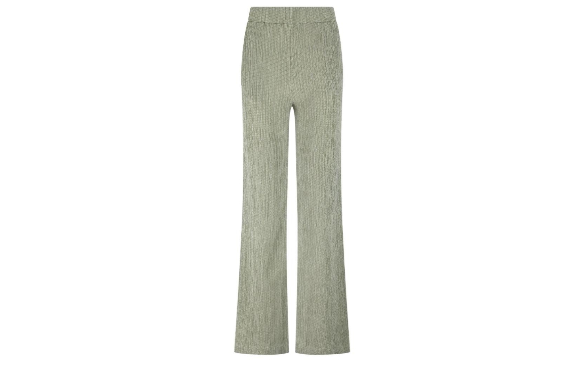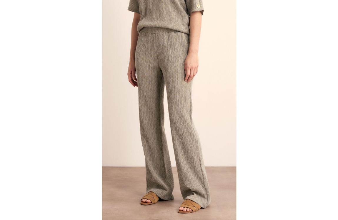 Tramontana crinkled wide leg trousers E02-19-101. Dit wide leg model sluit door middel van een elastische boord. Deze groene geprintte broek van Tramontana is voorzien van twee steekzakken aan de voorzijde en twee paspelzakken aan de achterzijde. Dit model heeft een gekreukte look.