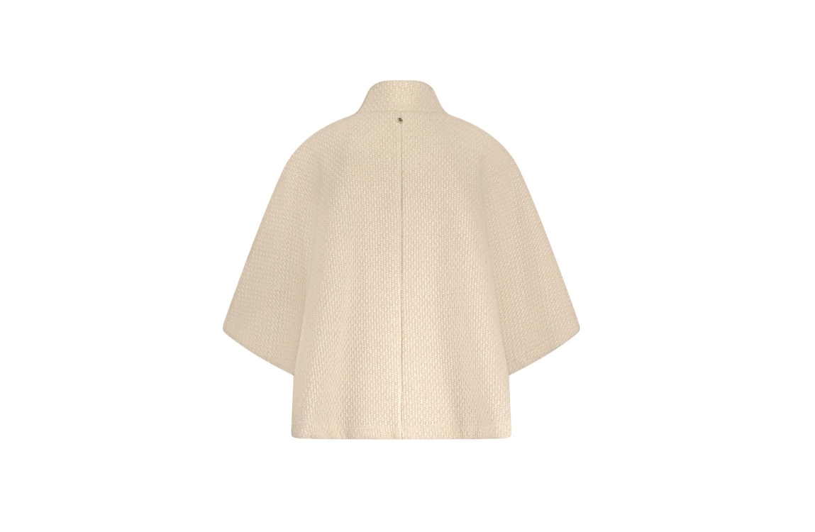 Tramontana Fancy Knitted Cape 006801 Stone melange. Dit wijdvallende model is voorzien van een opstaande kraag en driekwart mouwen. Deze beige cape van Tramontana sluit aan de voorzijde door middel van knopen. Dit model is bewerkt met een structuur.