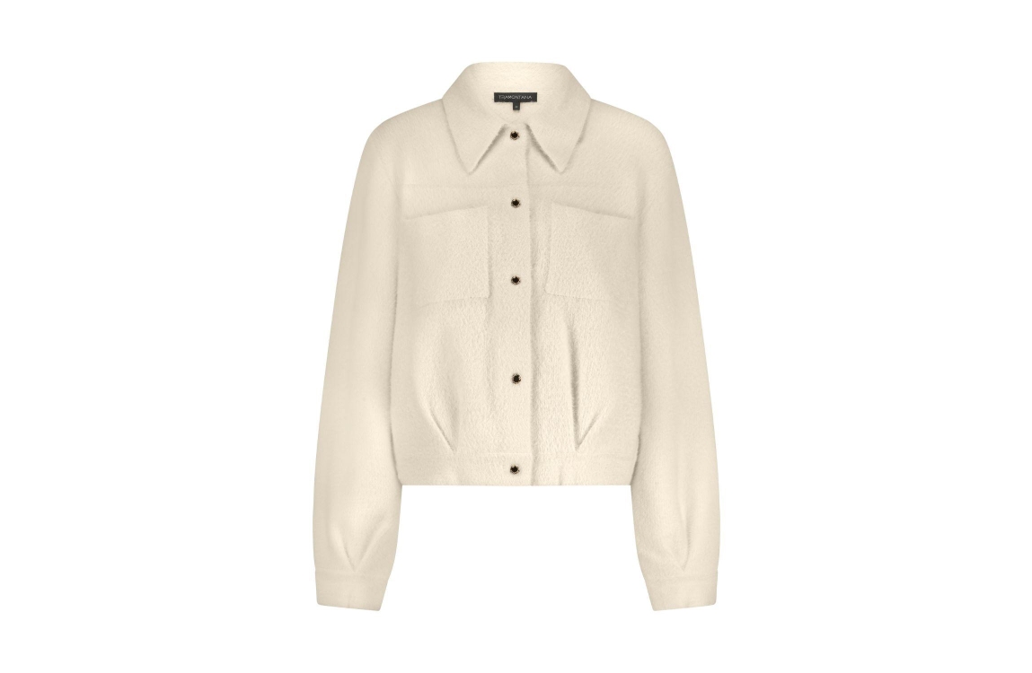 Tramontana Faux Fur Knitted Jacket 006800 Stone. Dit rechtvallende model is voorzien van een kraag en heeft lange mouwen. Dit off-white jasje van Tramontana sluit door middel van knopen en beschikt over twee zakken op de voorzijde. Dit model is uitgevoerd in faux fur materiaal.