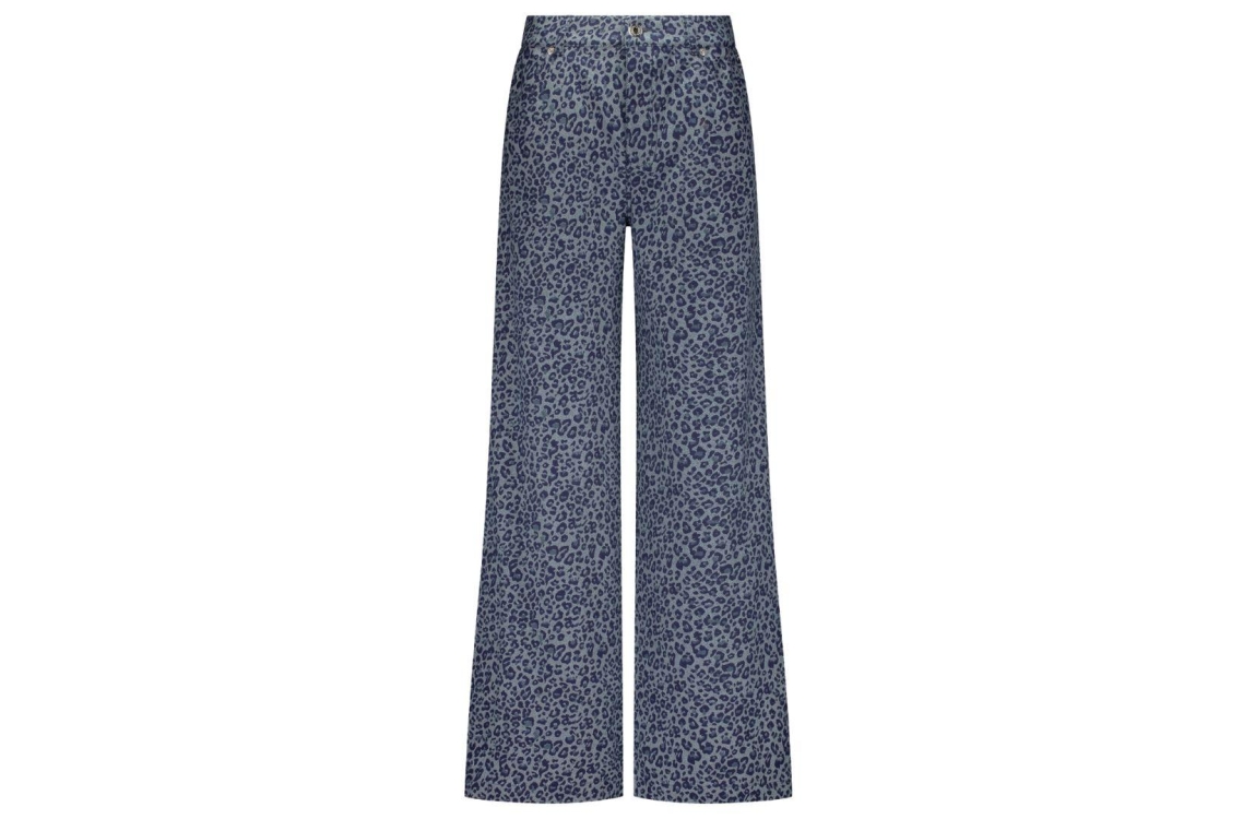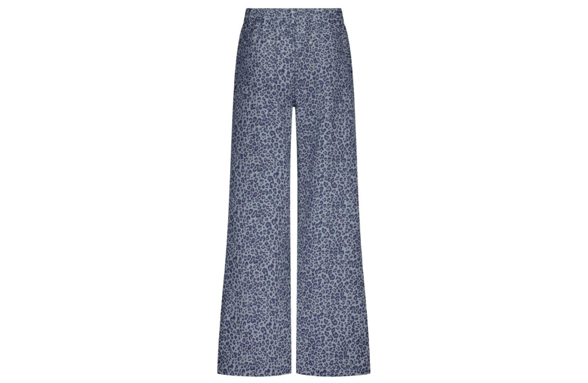 Tramontana broek C06-17-101. Dit wide fit model sluit door middel van een knoop- en ritssluiting met ceintuurlussen. Deze denim broek van Tramontana beschikt over twee steekzakken aan de voor- en achterzijde en is all-over bewerkt met de ton-sur-ton leopardprint.