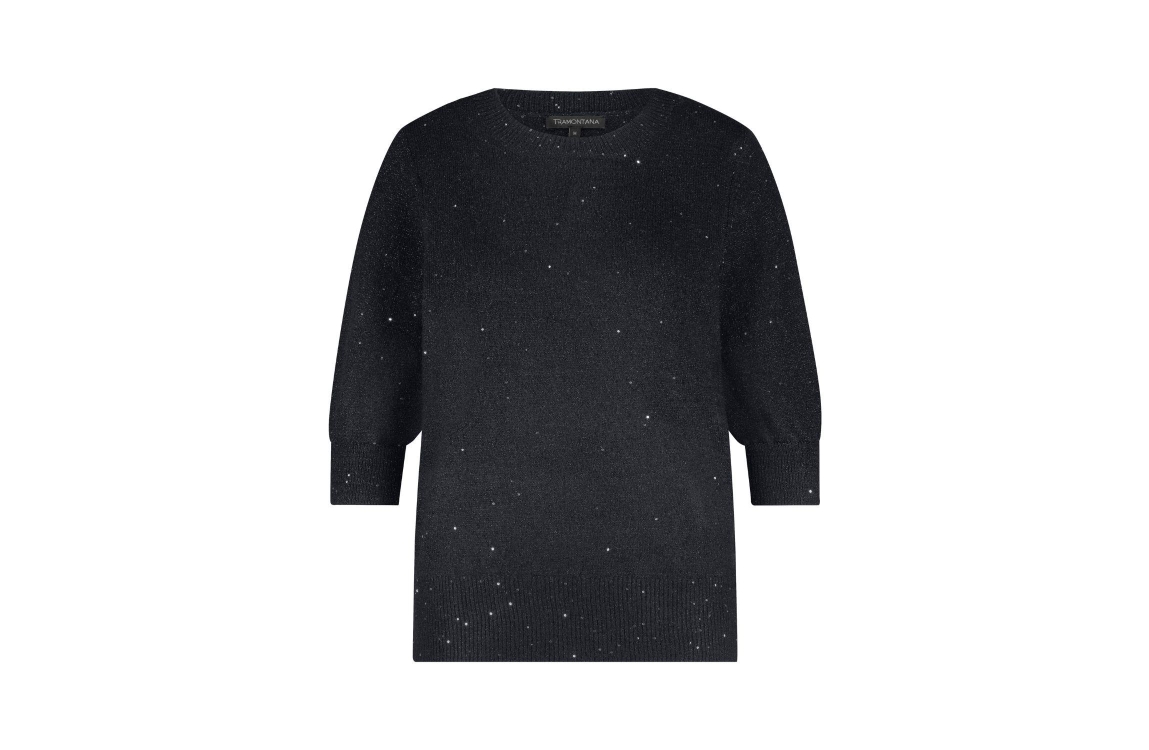 Tramontana Short-Sleeve Sequin Jumper. Dit rechtvallende model heeft een ronde hals en korte mouwen. Deze zwarte top van Tramontana is afgewerkt met ribboorden en is all-over bewerkt met een lurex en glitter.