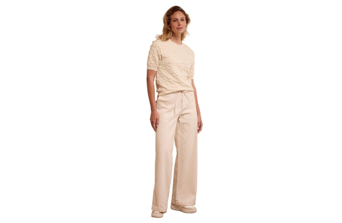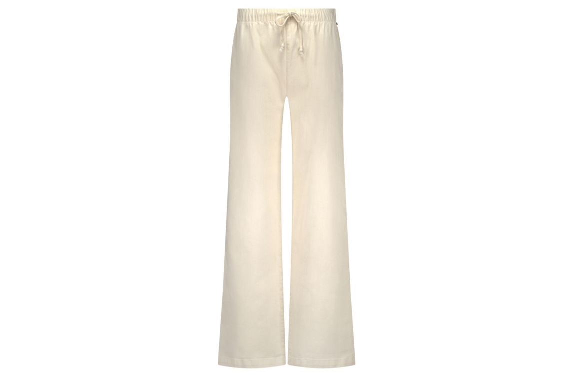 Tramontana broek C29-17-101. Dit wide leg model sluit door middel van een knoop- en ritssluiting met ceintuur. Deze off white broek van Tramontana beschikt over twee steekzakken aan de voor- en achterzijde.
