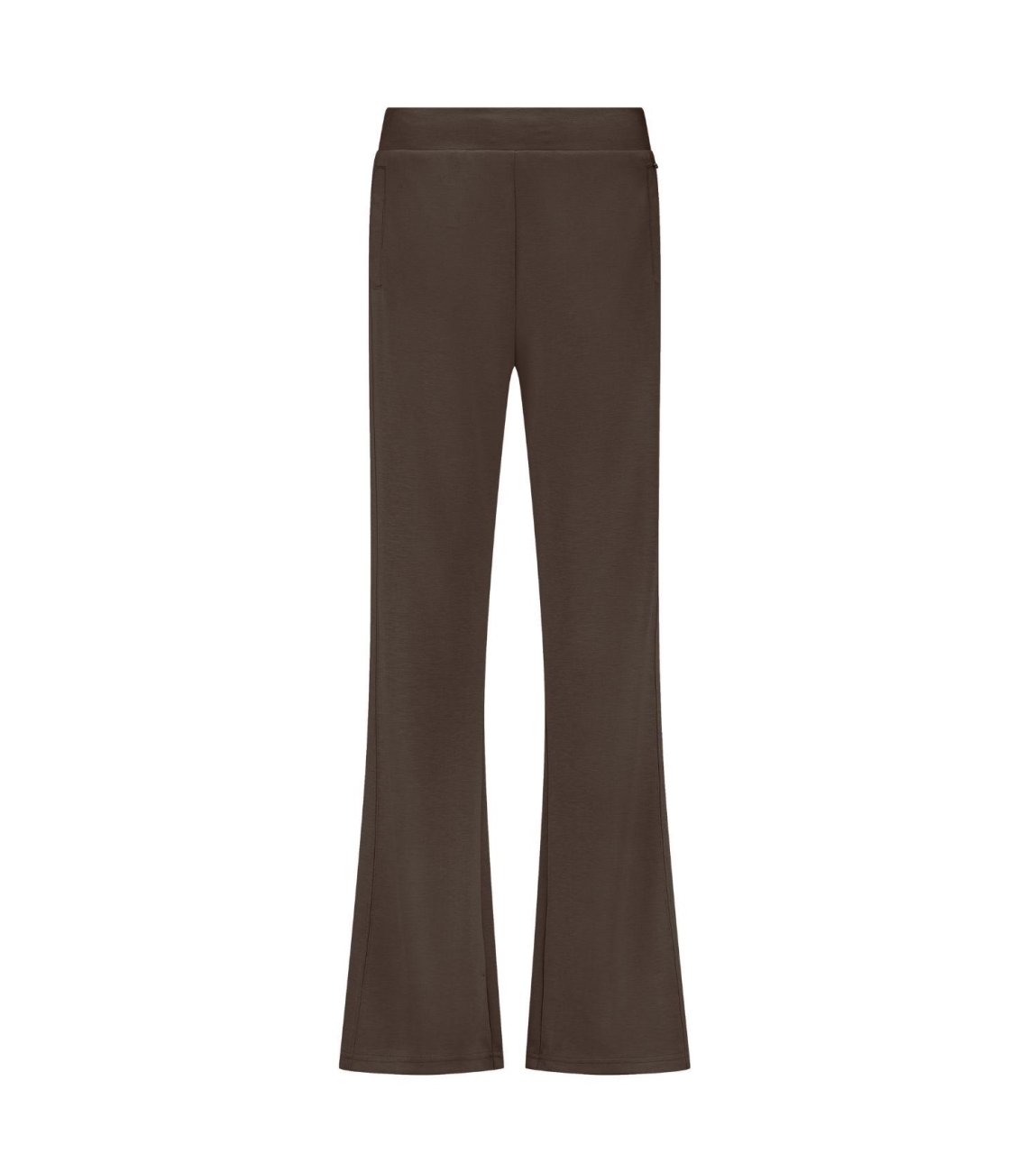 Tramontana Technical Sweat Wide-Leg Trousers 2660 Espresso. Dit wide leg model sluit door middel van elastische boord. Deze bruine broek van Tramontana is voorzien van twee steekzakken aan de voorzijde en twee paspelzakken aan de achterzijde.
