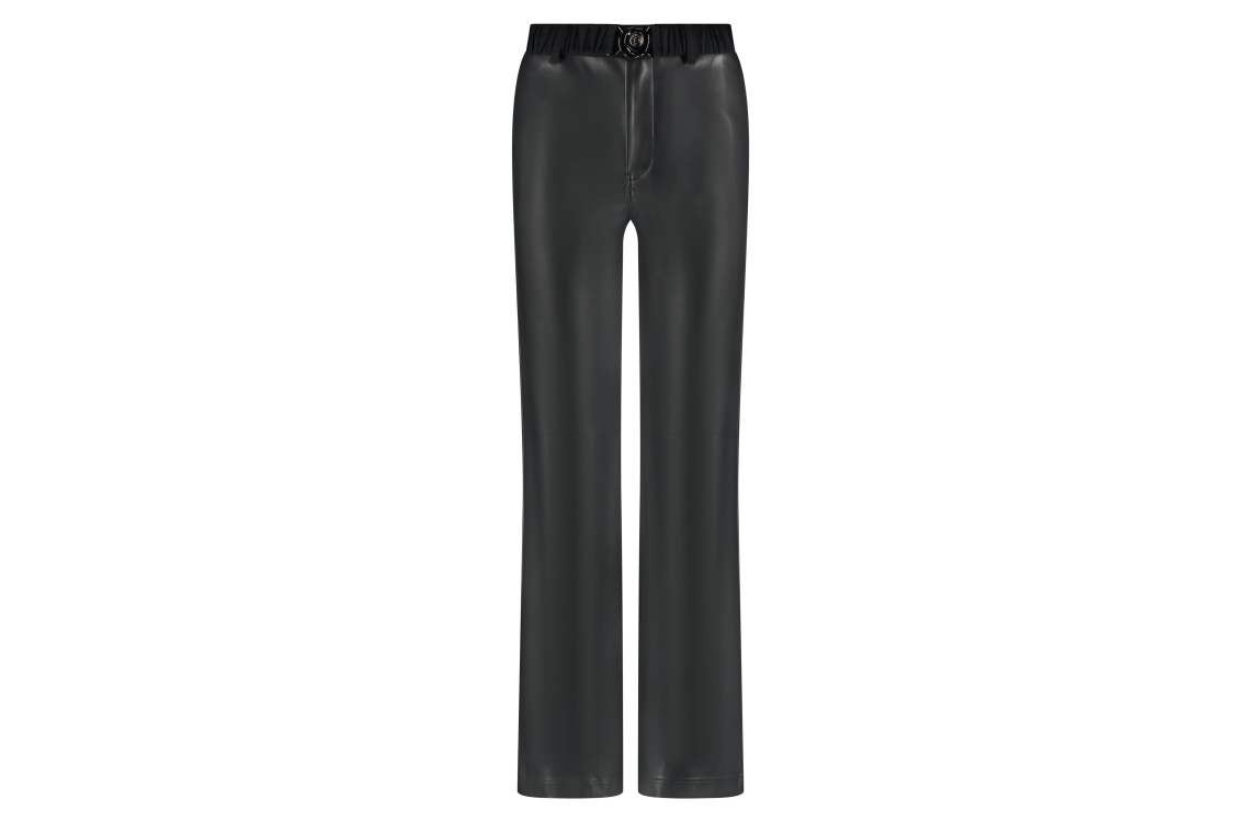 Tramontana trousers pu suedine detail. Dit rechtvallende model sluit door middel van een knoop, rits en ceintuur. Deze zwarte broek van Tramontana is uitgevoerd in een leather look/feel en beschikt over decoratieve zakken.