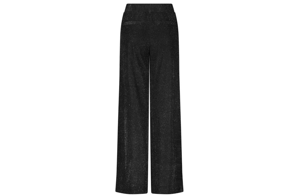 Tramontana Wide-Leg Trousers Sparkles 9000 Black. Dit wide leg model sluit door middel van een elastische boord. Deze zwarte broek van Tramontana is voorzien van twee schuine steekzakken aan de voorzijde en twee paspelzakken aan de achterzijde. Het model is all-over bewerkt met glitters.