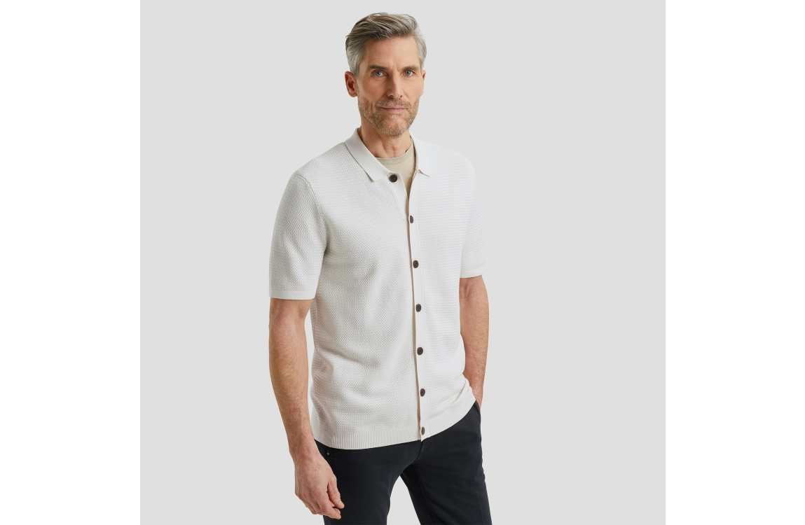 Vanguard button polo vkcs2503370. Dit rechtvallende model is voorzien van een kraag en korte mouwen. Deze beige polo van Vanguard sluit aan de voorzijde door middel van knopen. Dit model is bewerkt met een subtiele structuur.