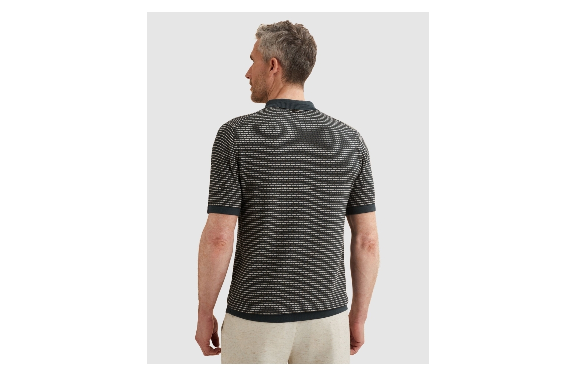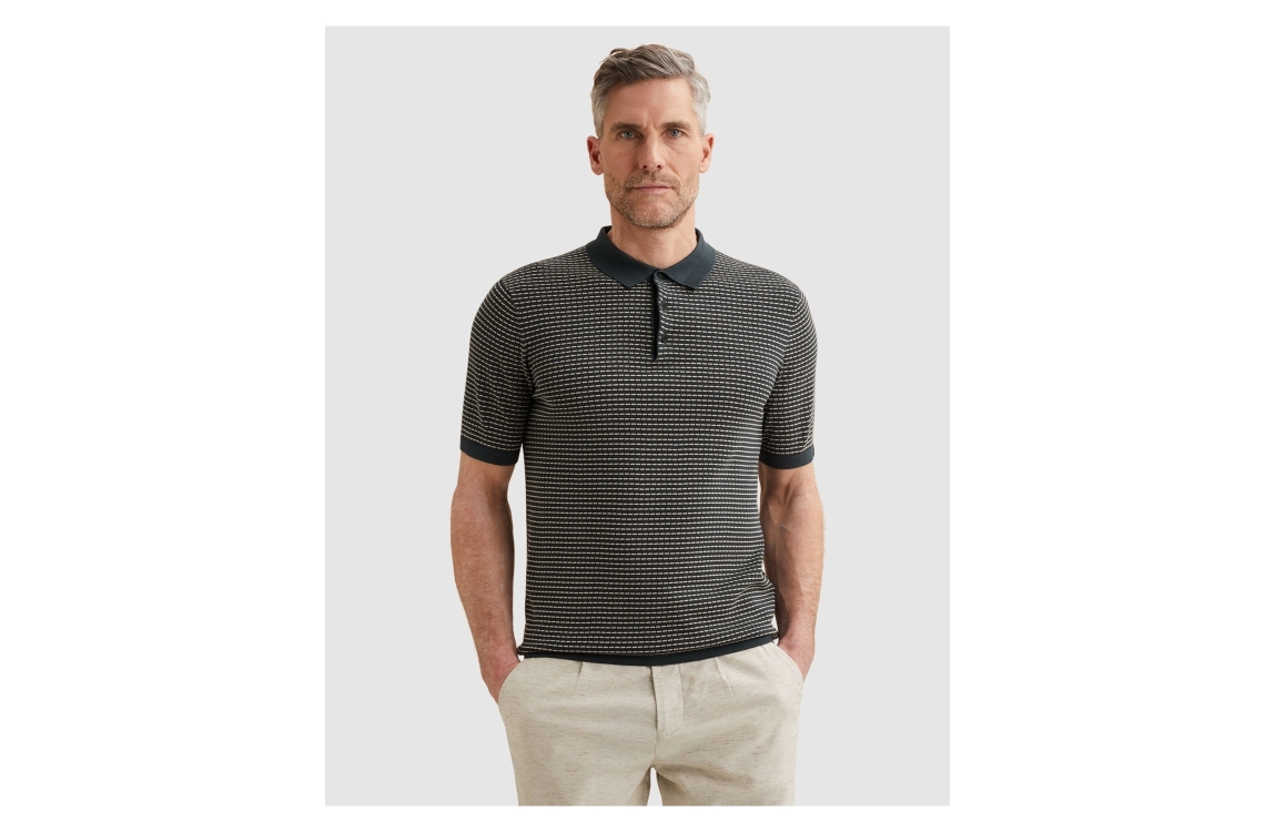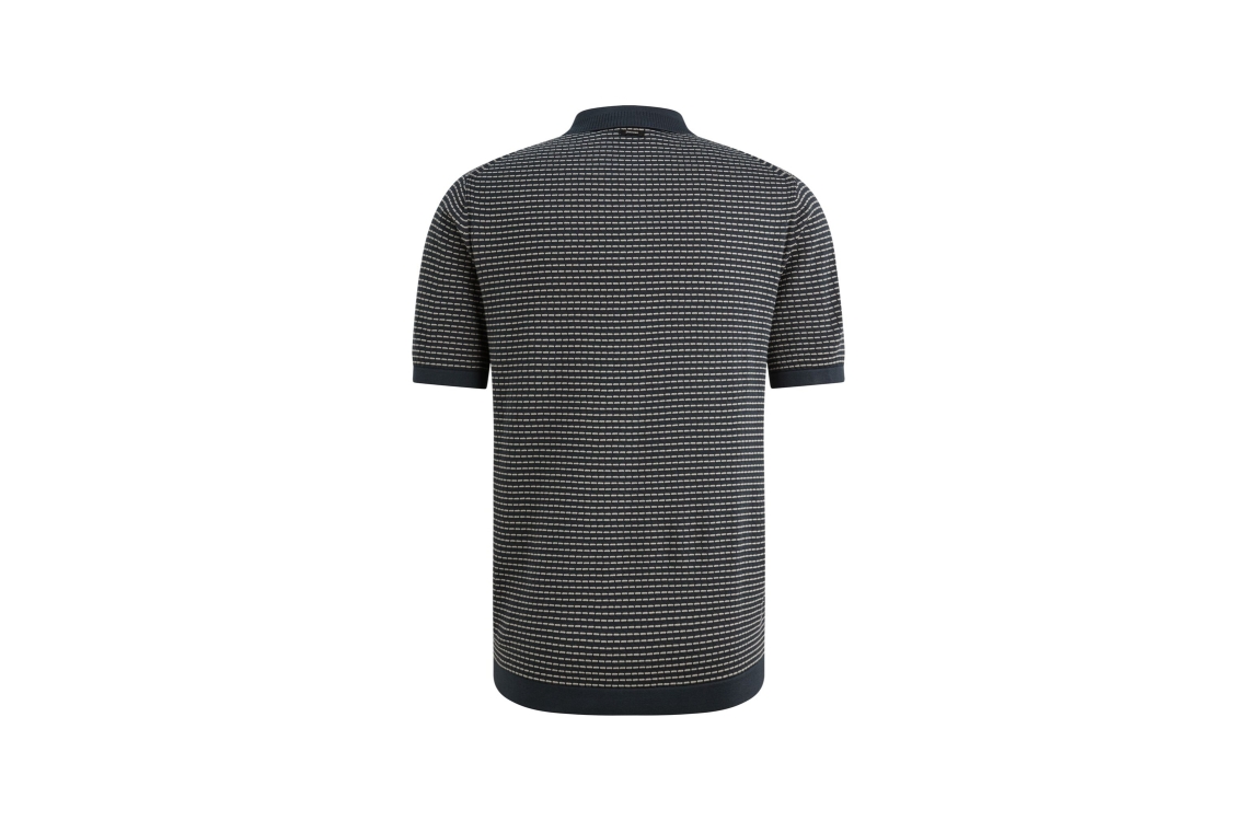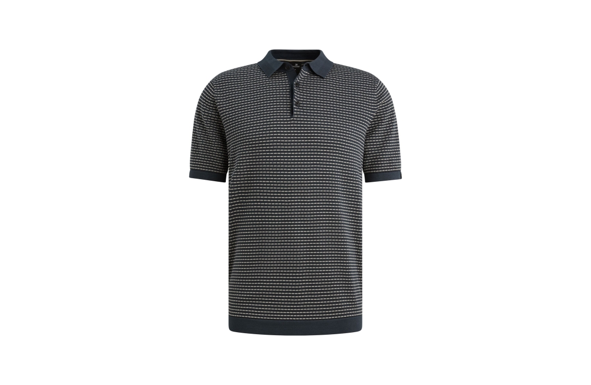 Vanguard short sleeve polo cotton modal VPSS2604864. Dit rechtvallend model is voorzien van een kraag en heeft korte mouwen, Deze navykleurige polo van Vanguard sluit door middel van knopen aan de bovenzijde en is all-over bewerkt met streeppatroon. Dit model is fijngebreid uitgevoerd.
