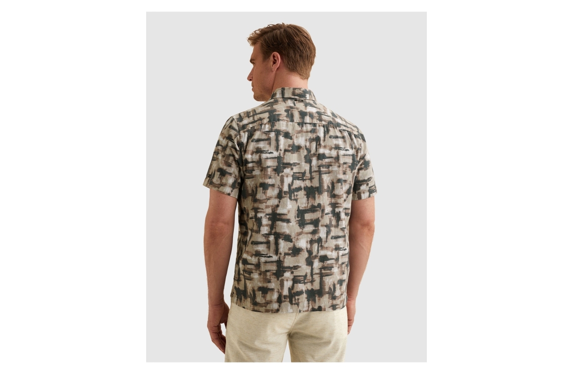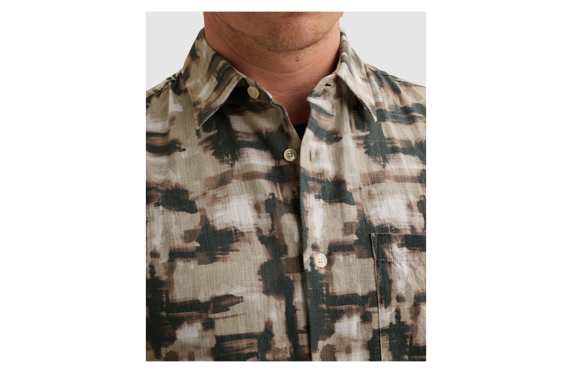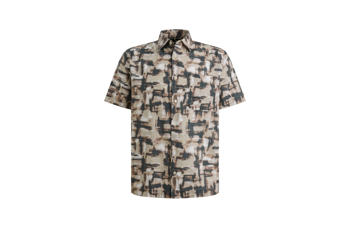 Vanguard short sleeve shirt print VSIS2604268. Dit rechtvallend model is voorzien van een kraag en heeft korte mouwen. Deze bruin/blauwe shirt van Vanguard sluit door middel van knopen en is all-over bewerkt met een print. Dit model is afgewerkt met een borstzak.
