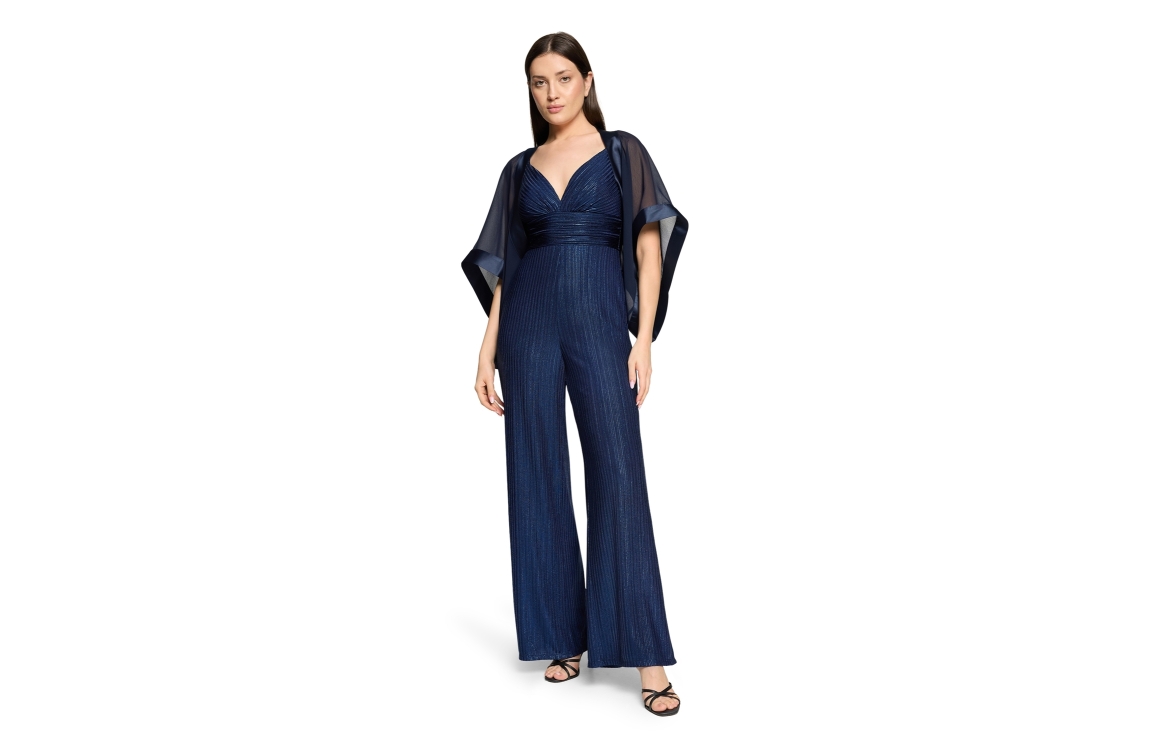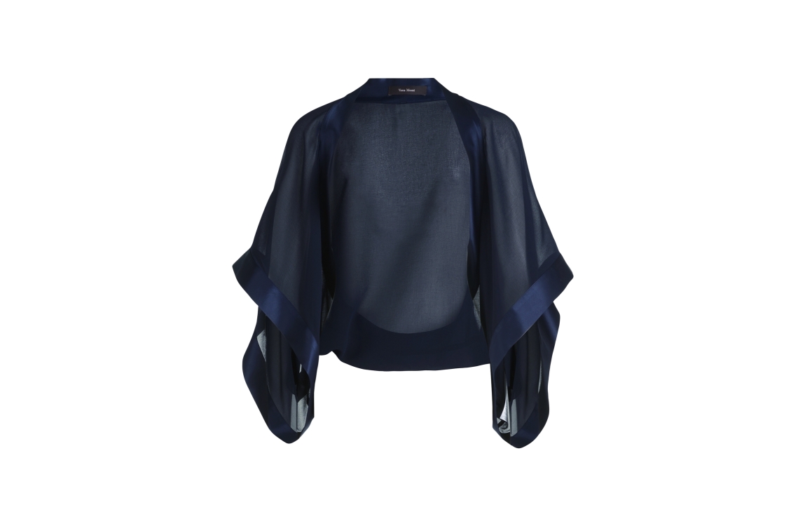 Vera Mont stola 03854825. Dit soepelvallend model heeft een ronde hals en driekwart mouwen. Deze donkerblauwe stola van Vera Mont is bewerkt met een satijnen bies en uitgevoerd in een semi-transparant materiaal.