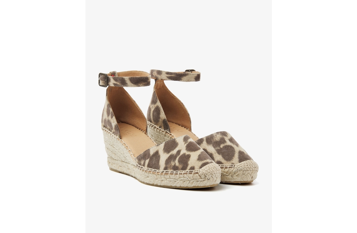 Via Vai Flora Braid 05-315 Giaguaro Brown. Deze panterprint bandschoen van Viavai sluit door middel van een gesp en heeft een sleehak.