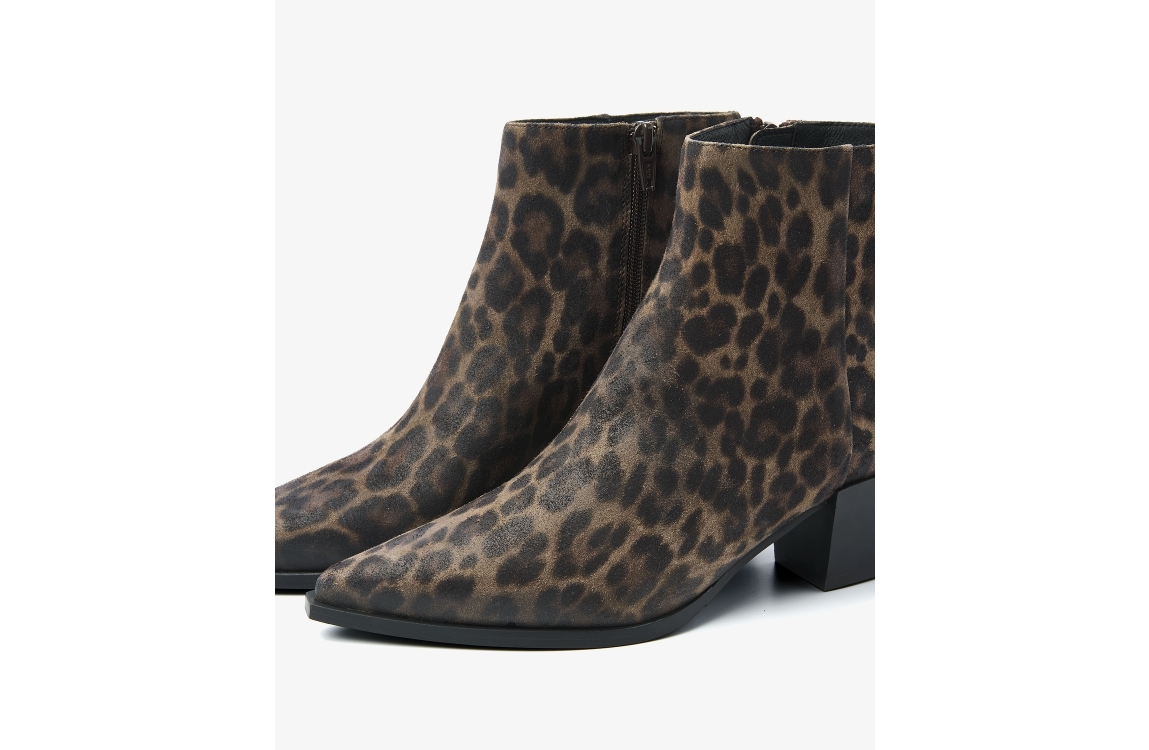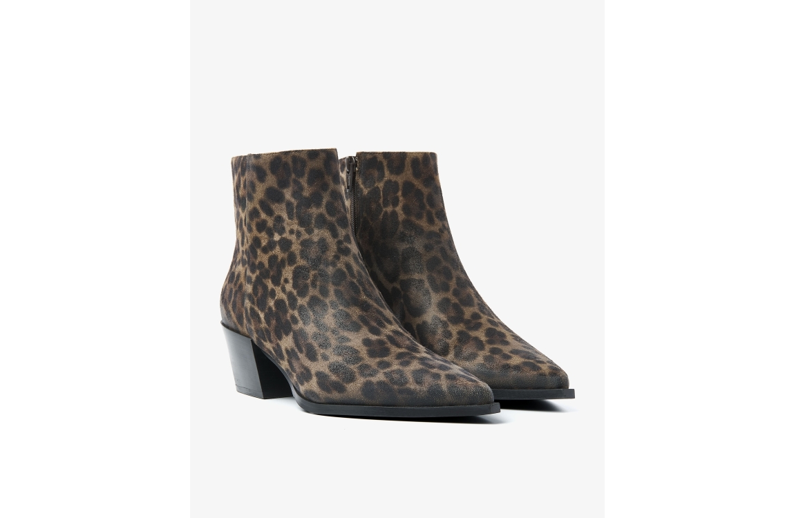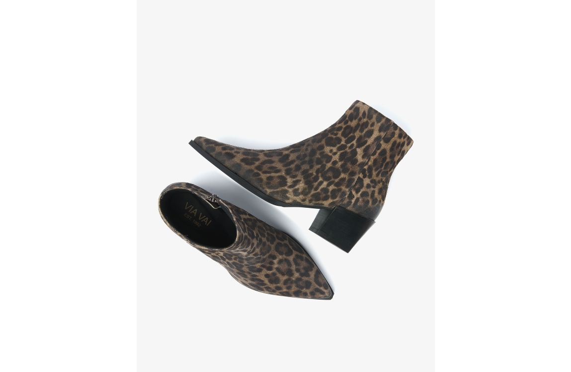 Via Vai Kate Malina 02-505 Bisonte Antilope laarzen. Dit stijlvolle model sluit door middel van een rits. Deze panterprint laarzen van Via Vai beschikken over een klein hakje en puntige voorzijde.