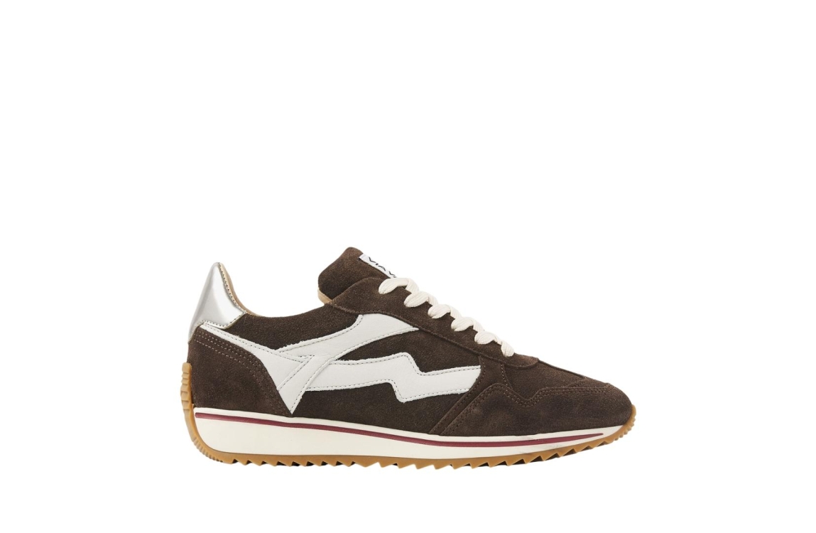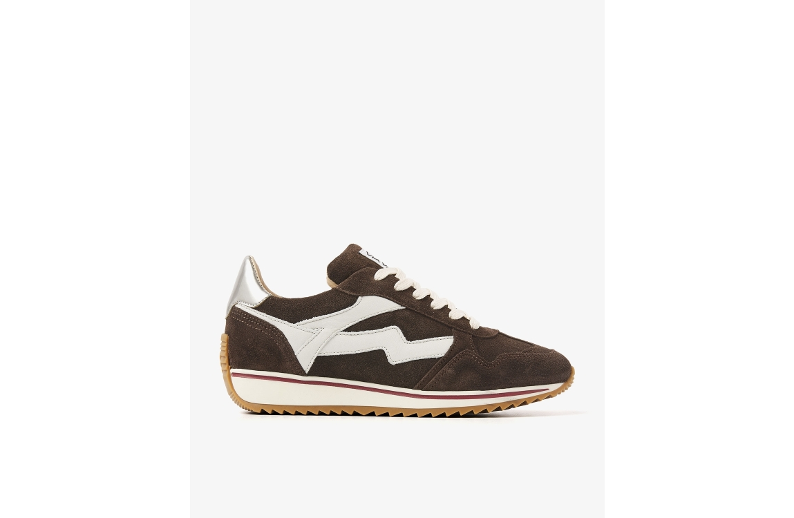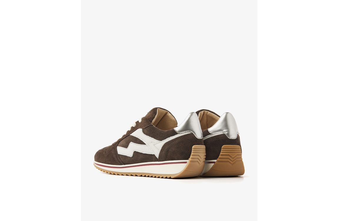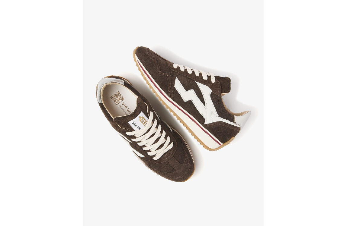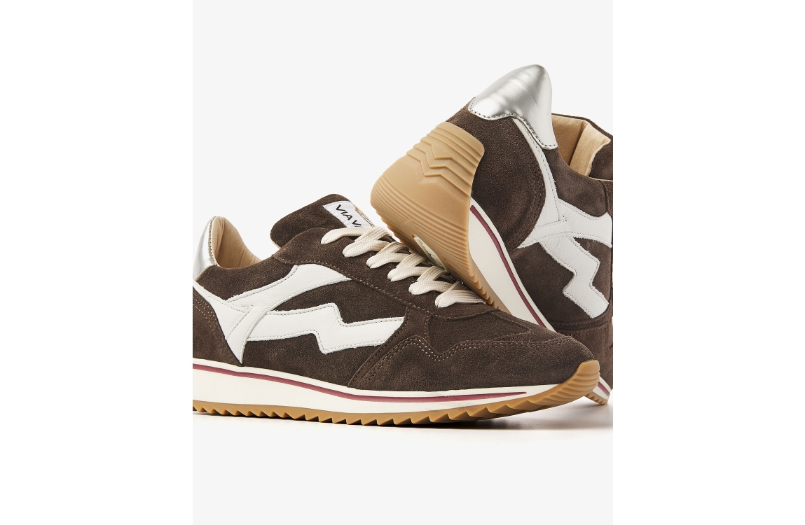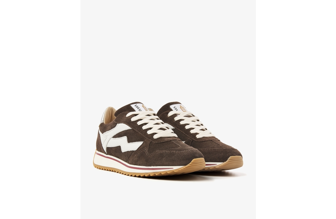 Via Vai sneaker Mikki Alex 62230. Dit sportieve model sluit door middel van veters en heeft een platte zool, gemaakt van rubber. Deze bruine sneaker van Via Vai is gemaakt van suède en leer en is afgewerkt met witte details.