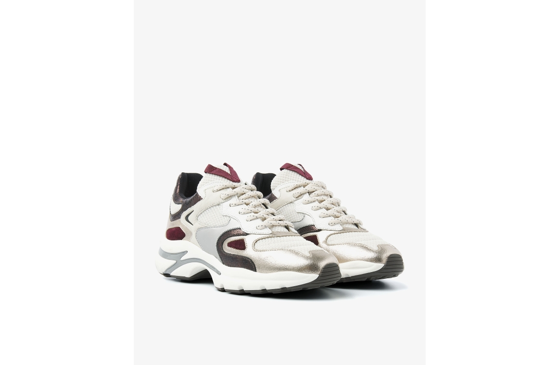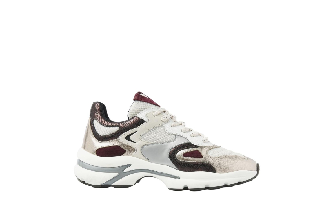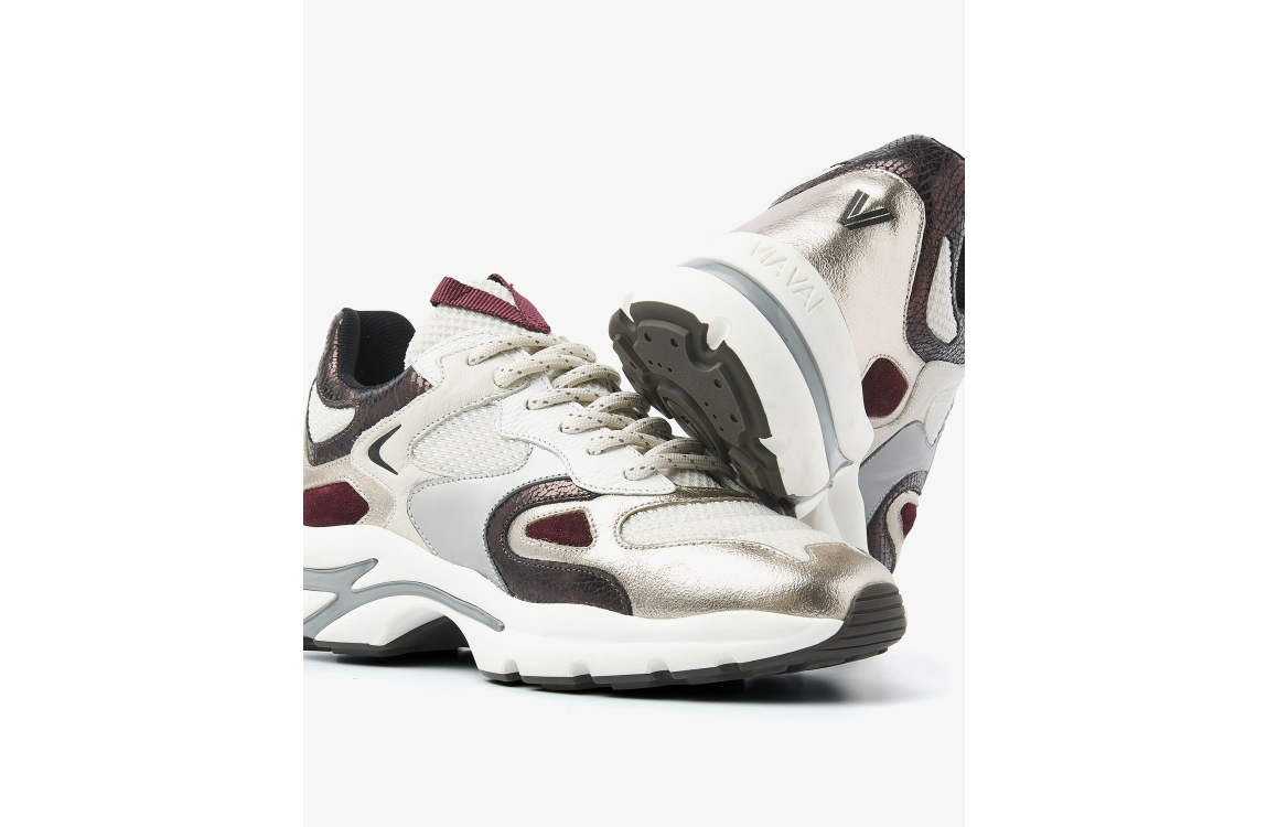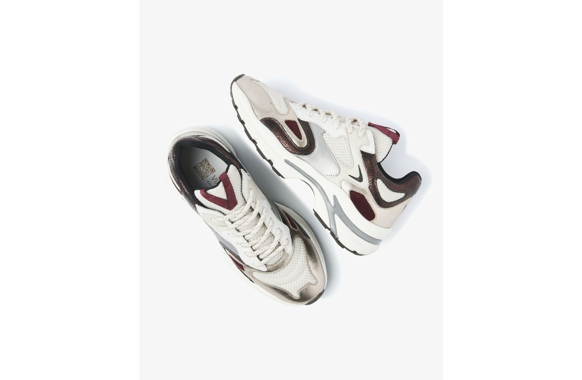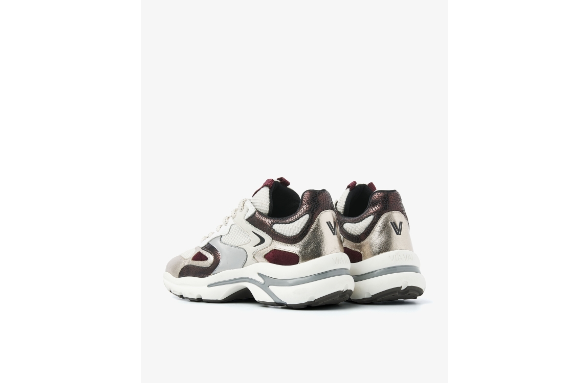 Via Vai Vesper Due 04-946 Metallic 62215. Dit sportieve model sluit door middel van veters. Deze multicolour sneakers van Via Vai zijn bewerkt met rood, goud en zwarte details. Dit model bevat een chunky zool.