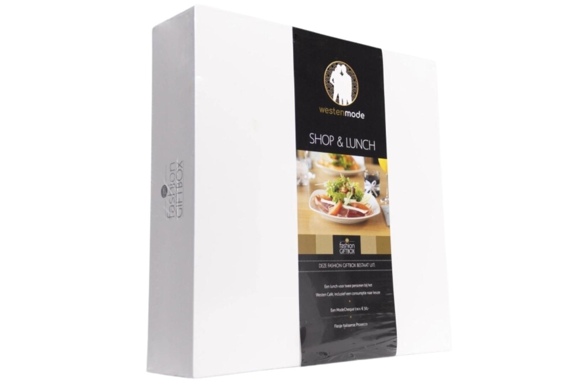 Deze giftbox bevat een à la carte arrangement voor twee personen, inclusief een consumptie naar keuze en een Westen Mode cadeaubon ter waarde van €50,-. De giftbox is te besteden in onze winkel en in ons eigen Westen Café.