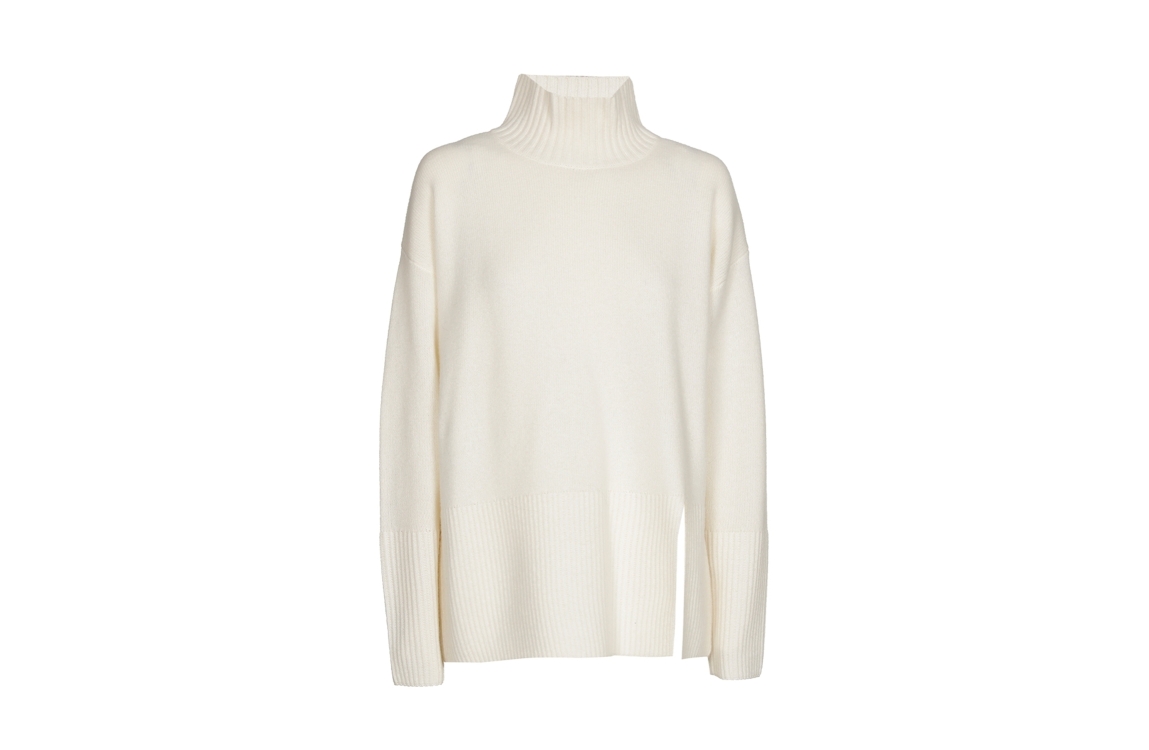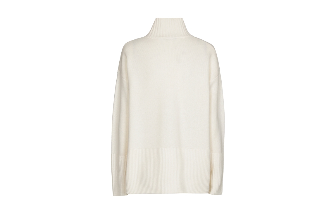 Xandres pullover Andri 29414-01. Dit wijdvallend model is voorzien van een col en heeft lange mouwen. Deze witte pullover van Xandres is afgewerkt met een split aan de onder- voorzijde.