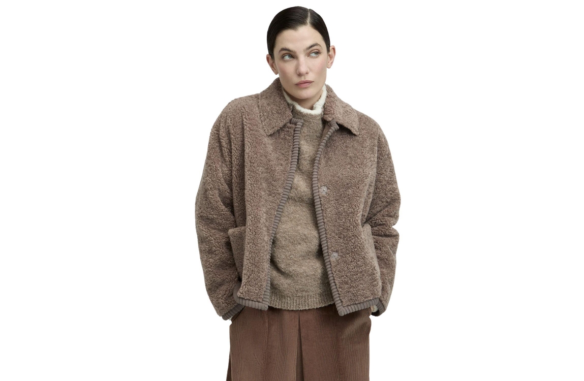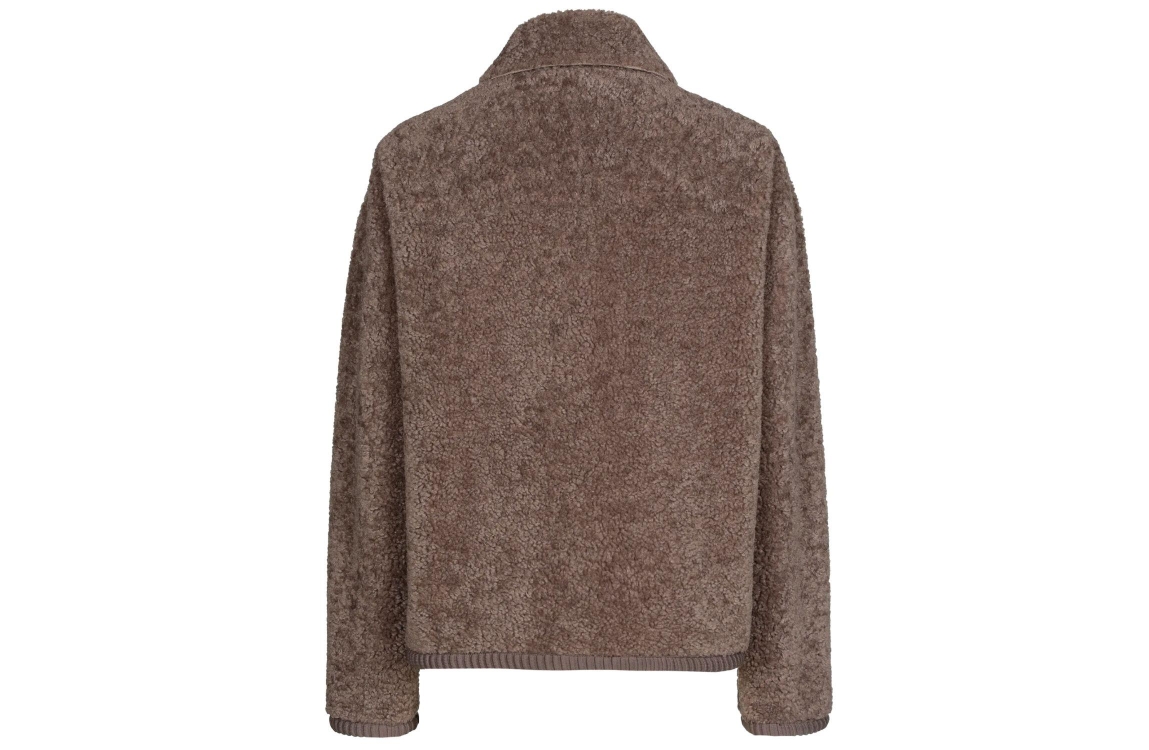 Xandres jas BILO 61479-01-0750. Dit wijdvallende fit model heeft een omgeslagen kraag en lange mouwen. Deze donkerbruine reversible jas van Xandres sluit aan de voorzijde door middel van knopen en kan gedragen worden in zowel een teddy- als een suède-look. Het model is voorzien van twee opgestikte zakken en heeft een comfortabele pasvorm.