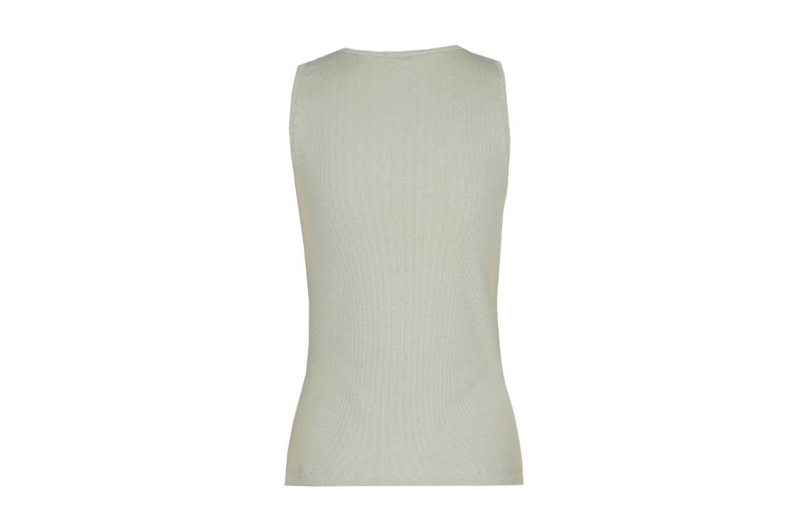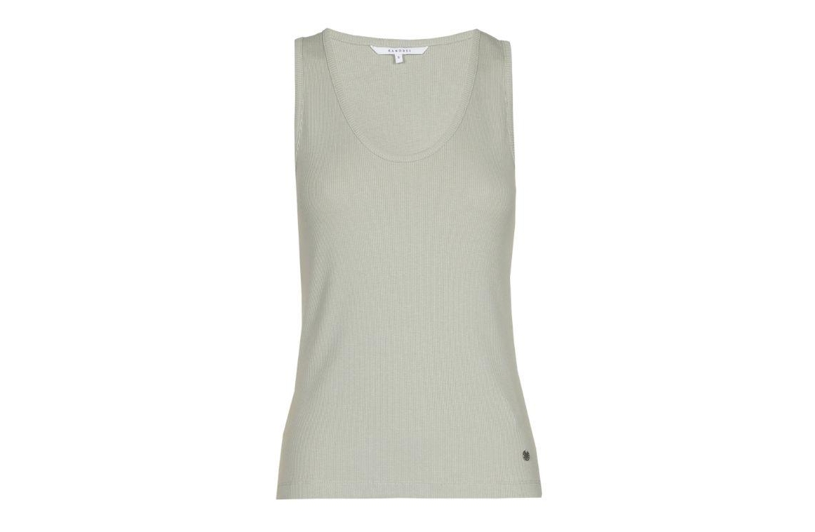 Xandres top Fozia 29548-01 0910. Dit licht aangesloten model heeft een diepe, ronde halslijn en is mouwloos. Deze lichtgroene top van Xandres is uitgevoerd in geribde- en stretchkwaliteit.