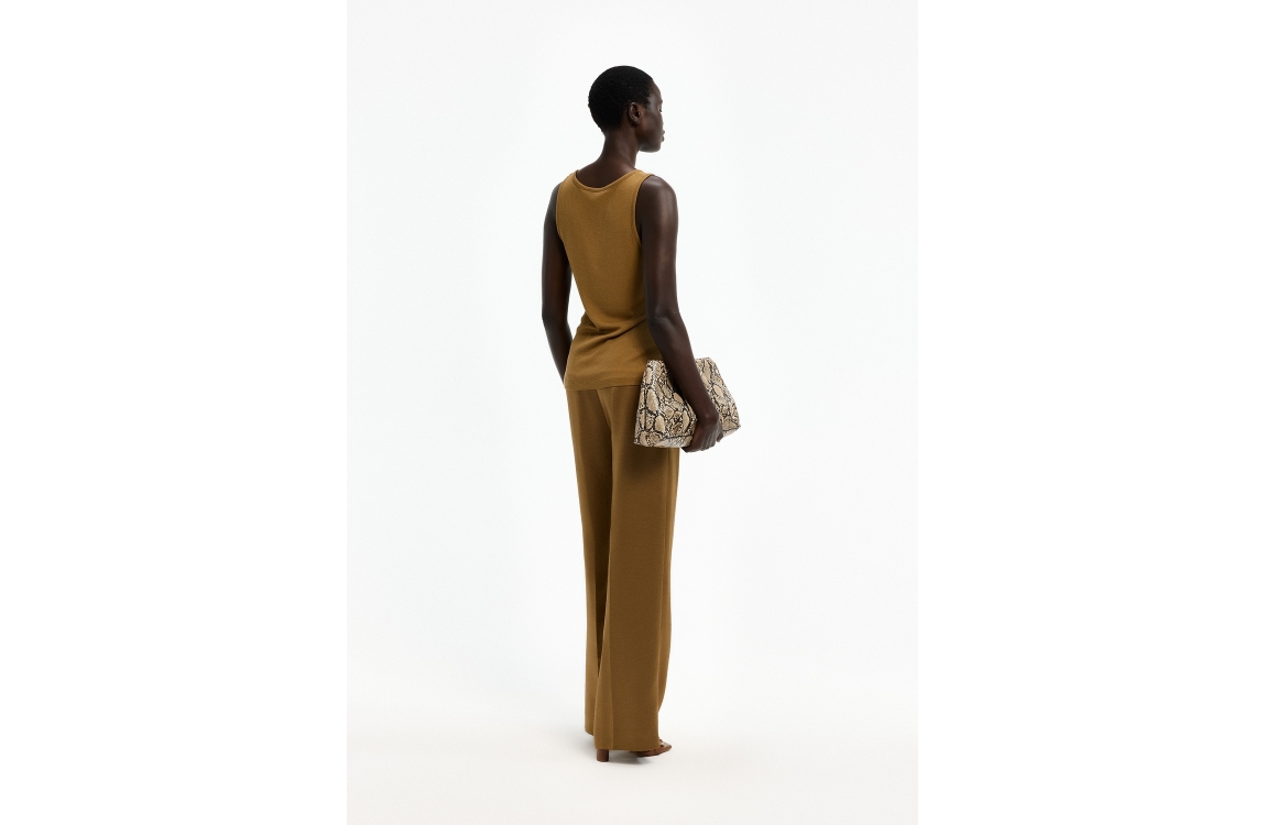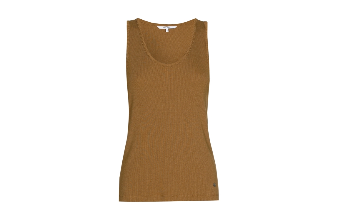 Xandres top Fozia 29548-01 0990. Dit licht aangesloten model heeft een diepe, ronde halslijn en is mouwloos. Deze donkergroene top van Xandres is uitgevoerd in geribde- en stretchkwaliteit.