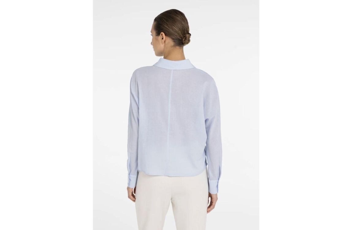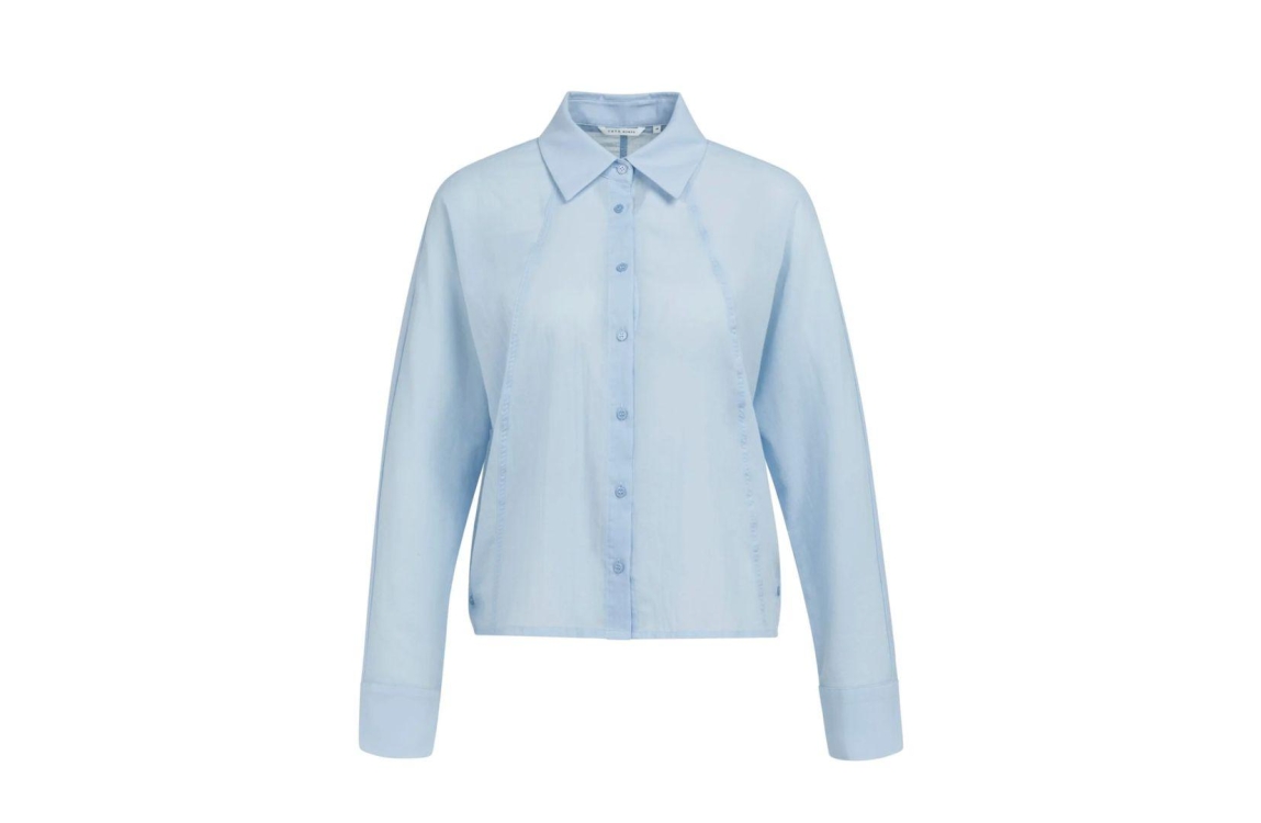 Yaya batwing blouse 01-201214-604. Dit rechtvallend model is voorzien van een kraag en heeft lange vleermuismouwen. Deze lichtblauwe blouse van Yaya sluit door middel van knopen en beschikt aan de zijkanten over splitjes dat sluit door middel van knopen.