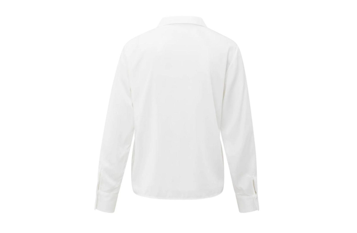 Yaya blouse 201187-511. Dit rechtvallend model is voorzien van een kraag afgewerkt met een strik details en heeft lange mouwen. Deze witte blouse van Yaya sluit door middel van knopen