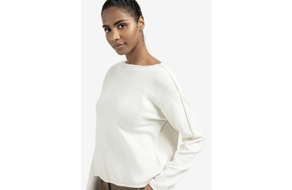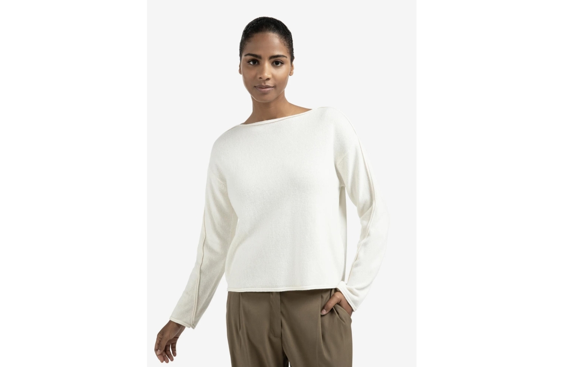• Yaya Boatneck sweater with fringes 99015 Off white