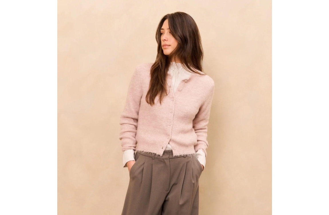 Yaya cardigan 01-010137-510 615092. Dit rechtvallende model heeft een ronde halslijn en lange mouwen. Deze lichtroze cardigan sluit aan de voorzijde door middel van knopen en is all-over uitgevoerd in ribgebreide kwaliteit. Het model is gedetailleerd met ruffles bij de boorden.