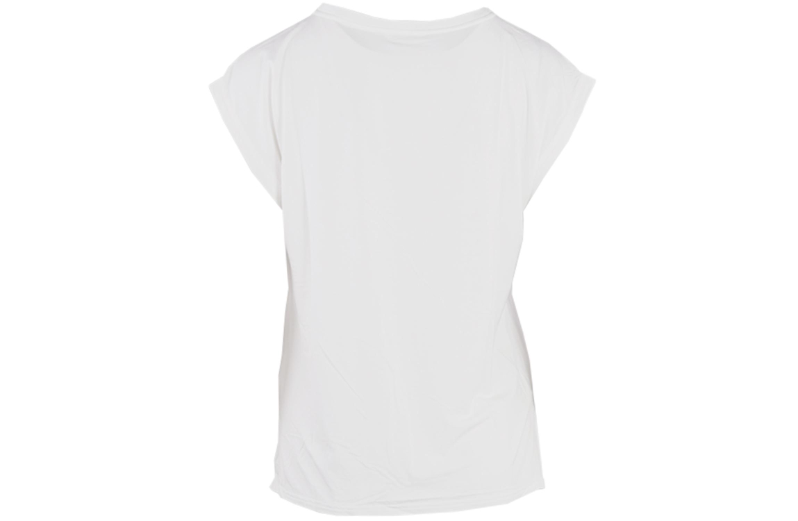Yaya online top 01-701010N. Dit witte rechtvallende model heeft een ronde hals en korte mouwen. Deze witte top van Yaya is uitgevoerd in een fijne stretch materiaal aan de achterzijde.