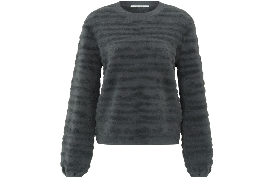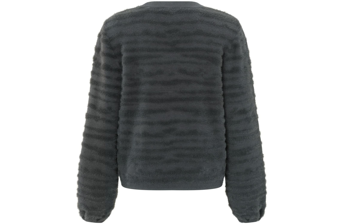 • Yaya Fur jaquard sweater ls Dark metal grey