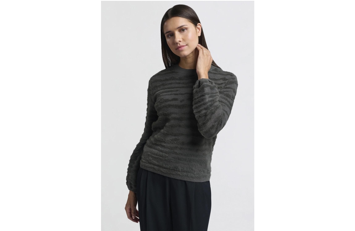 Yaya Fur jaquard sweater ls Dark metal grey