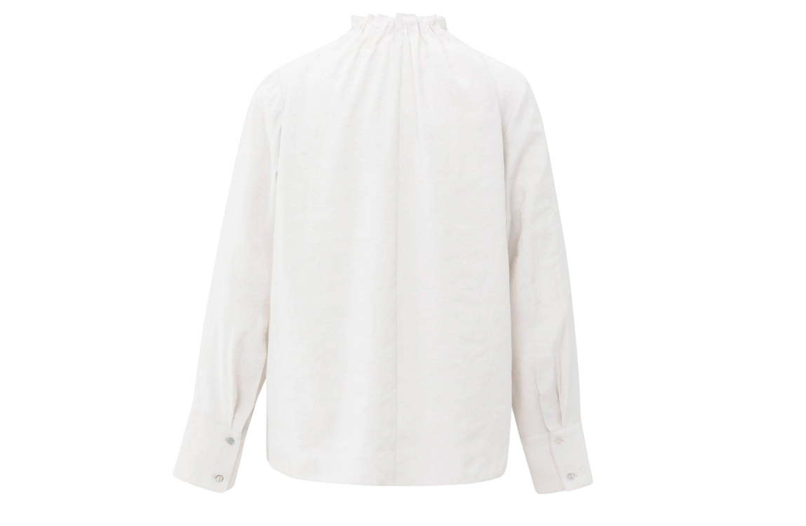 Yaya blouse 01-701328-510. Dit rechtvallende model heeft een elastische turtleneck en lange mouwen. Deze gebroken witte blouse van Yaya is afgewerkt met manchetten.
