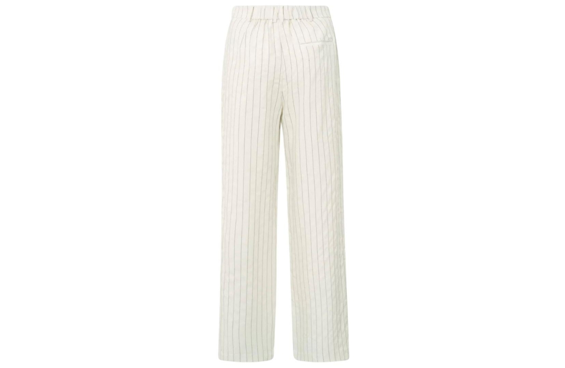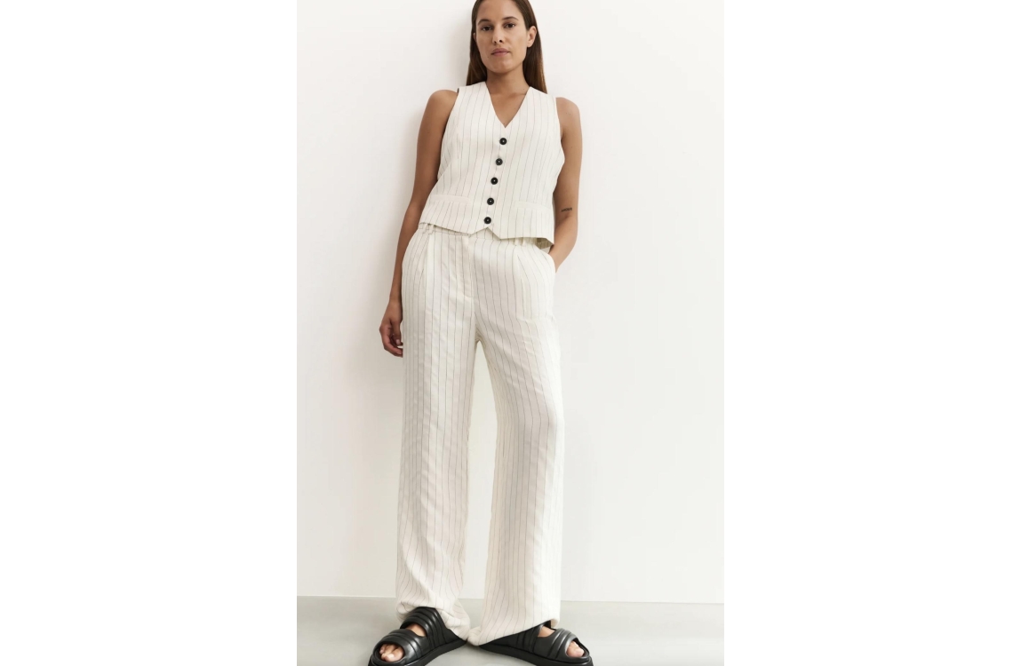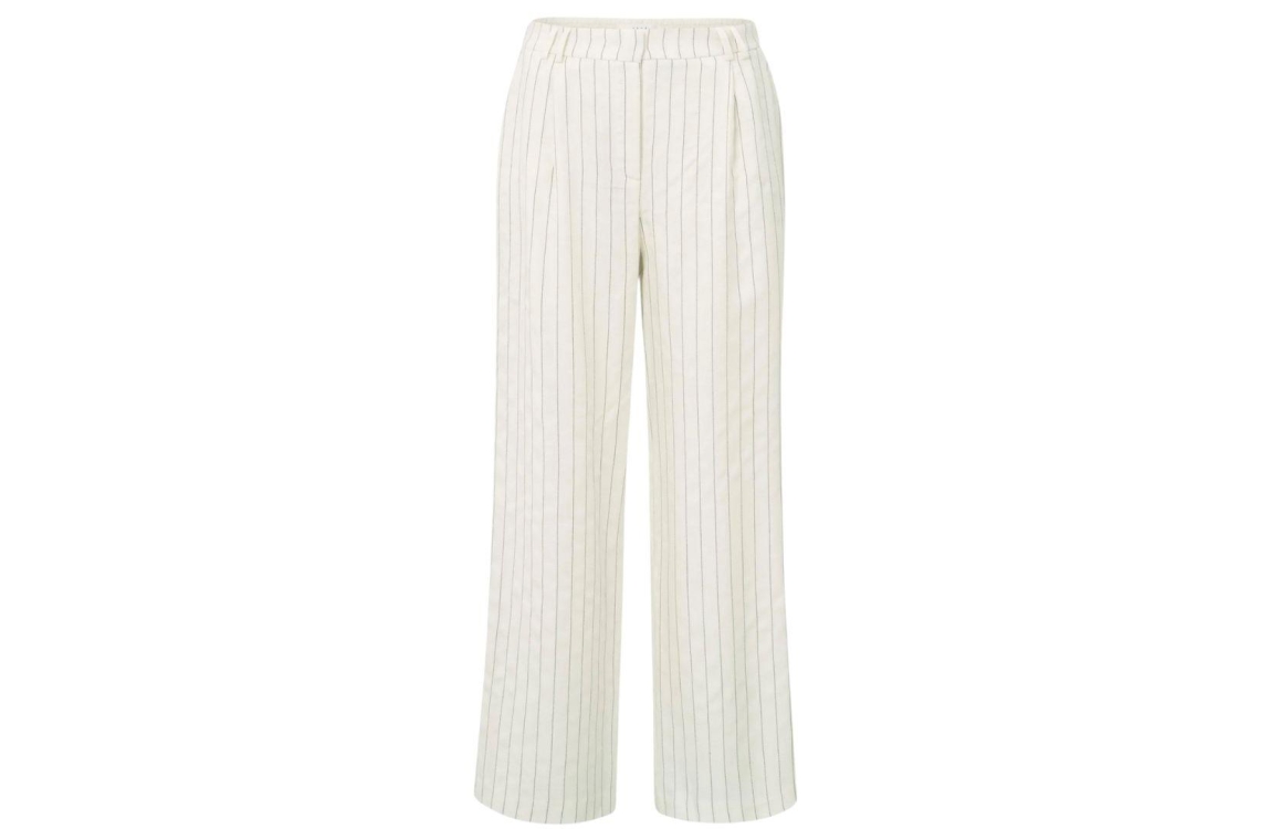 Yaya online broek 01-301202-505. Dit wijdvallend model sluit door middel van een blinde knoop- en ritssluiting en is voorzien van ceintuurlussen. Deze zandkleurige broek van Yaya is uitgevoerd in een pinstripe print en beschikt over twee steekzakken aan de voorzijde en een paspelzak aan de achterzijde.