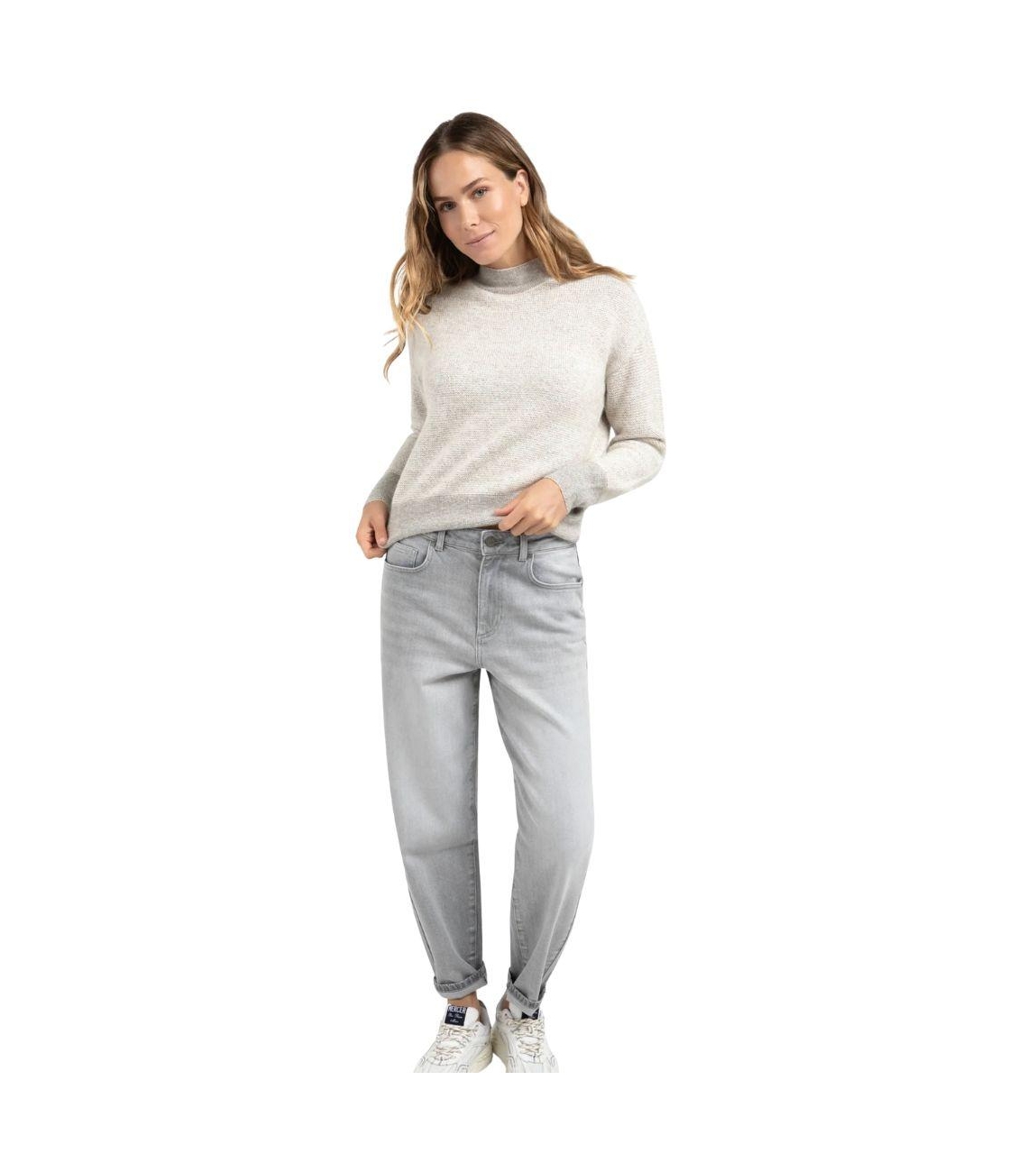 Yaya broek 01-311125-510 99288. Dit loose fit model sluit door middel van een knoop- en ritssluiting en is voorzien van ceintuurlussen. Deze lichtgrijze broek van Yaya is voorzien van twee steekzakken aan de voor- en achterzijde en een muntenzakje.