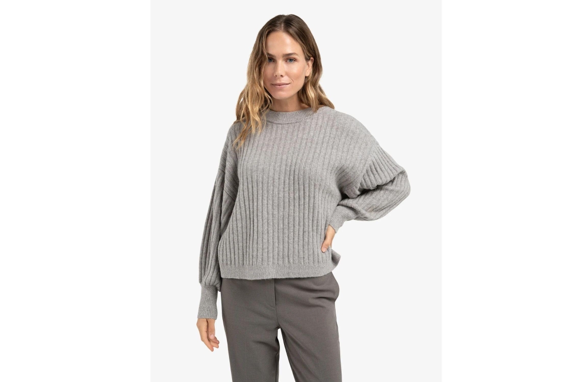 Yaya Ribbed sweater with round neck 99032 Taupe grey. Dit rechtvallende model is voorzien van een ronde hals en heeft lange ribgebreide mouwen. Deze grijs/taupe kleurige Yaya sweater is afgewerkt met ribboorden. Dit model is voorzien van een grof ribpatroon.