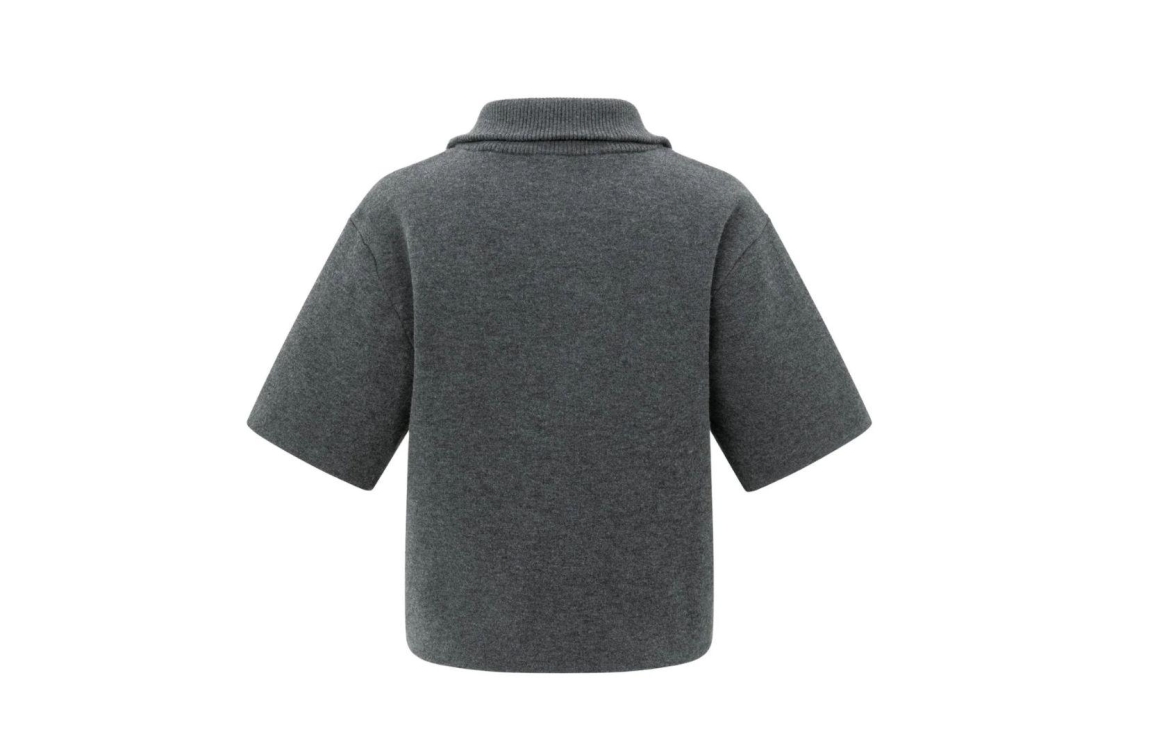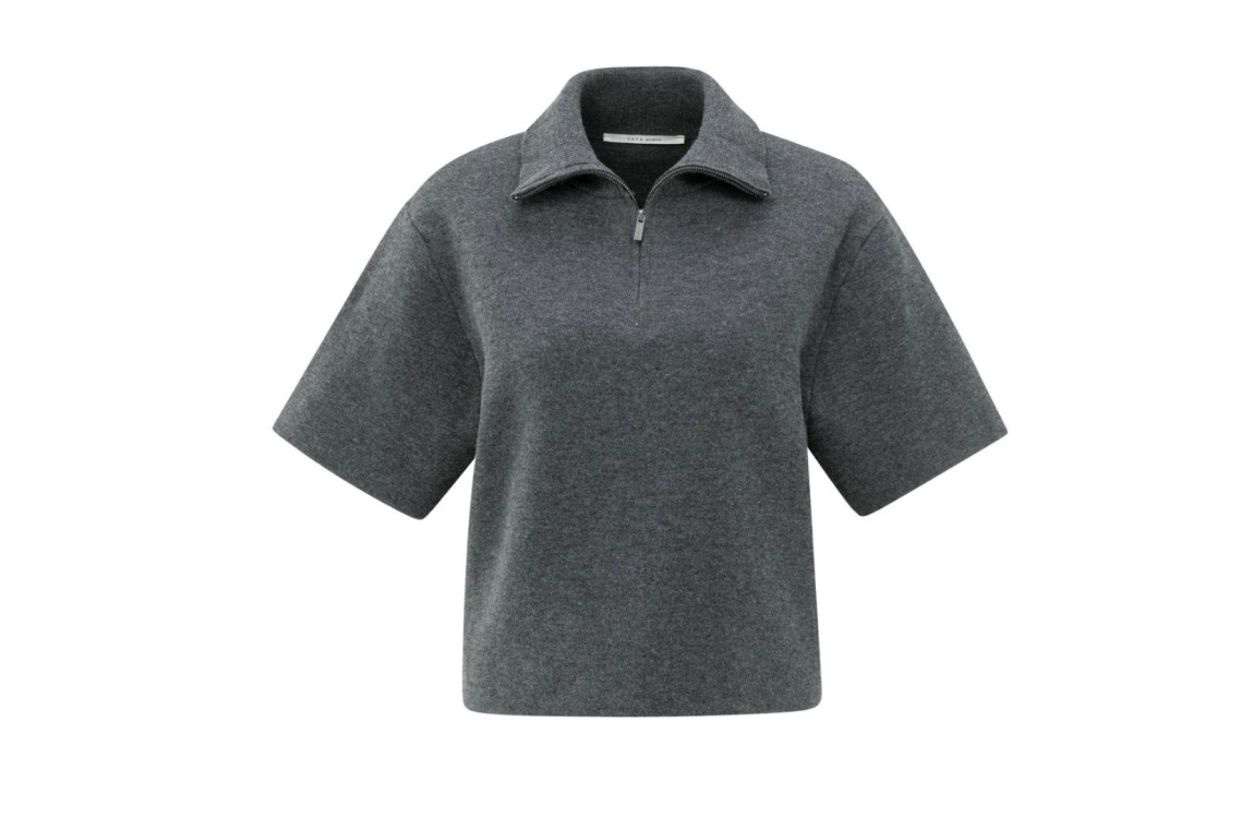 Yaya Short sleeve sweater with coll 99020 Anthracite melYaya Short sleeve sweater with coll 99020 Anthracite mel