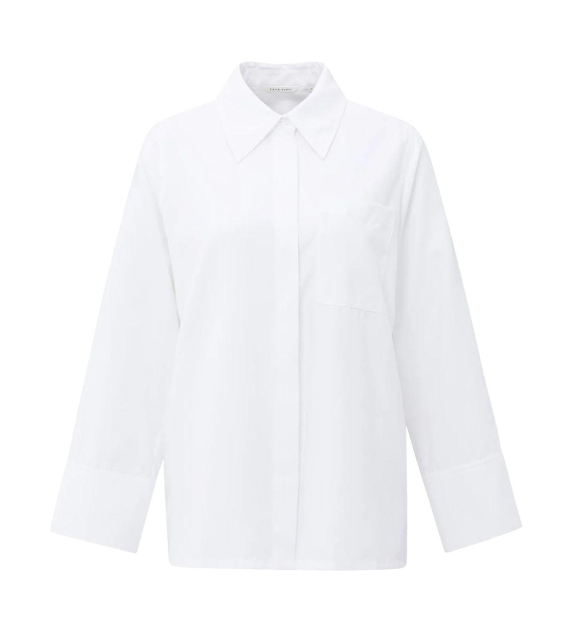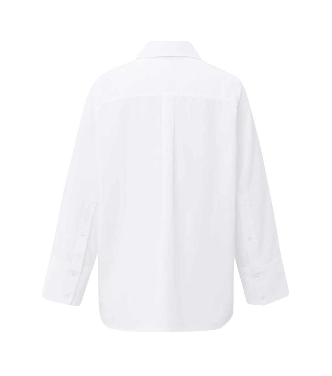 Yaya blouse 01-201192-510 00000. Dit rechtvallende model heeft een omgeslagen kraag en lange, wijde mouwen. Deze witte blouse van Yaya sluit aan de voorzijde door middel van knopen en is voorzien van een linker borstzak.