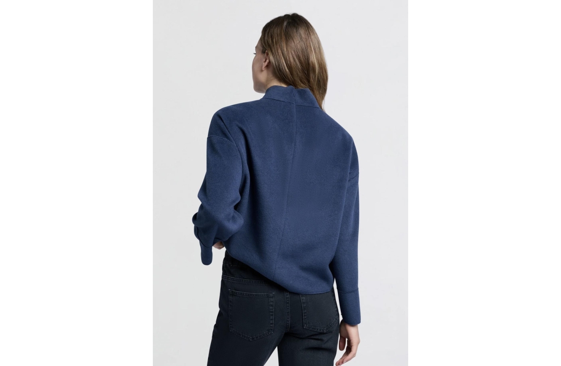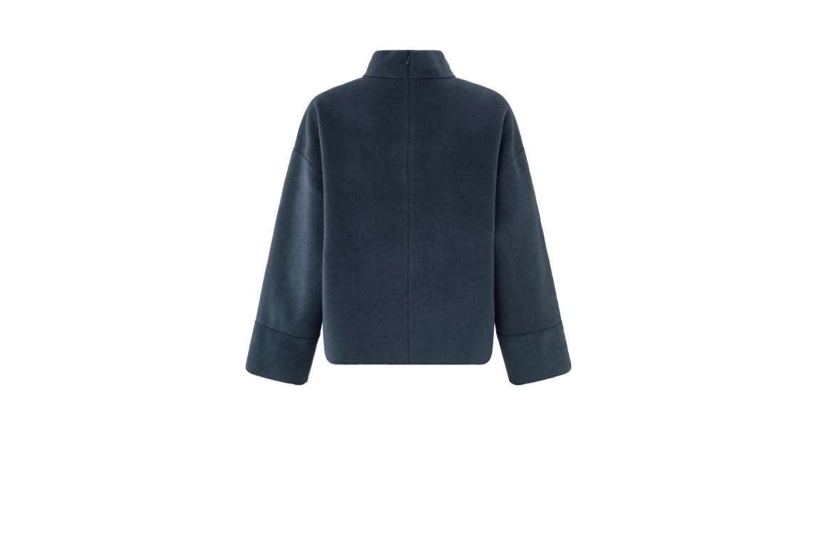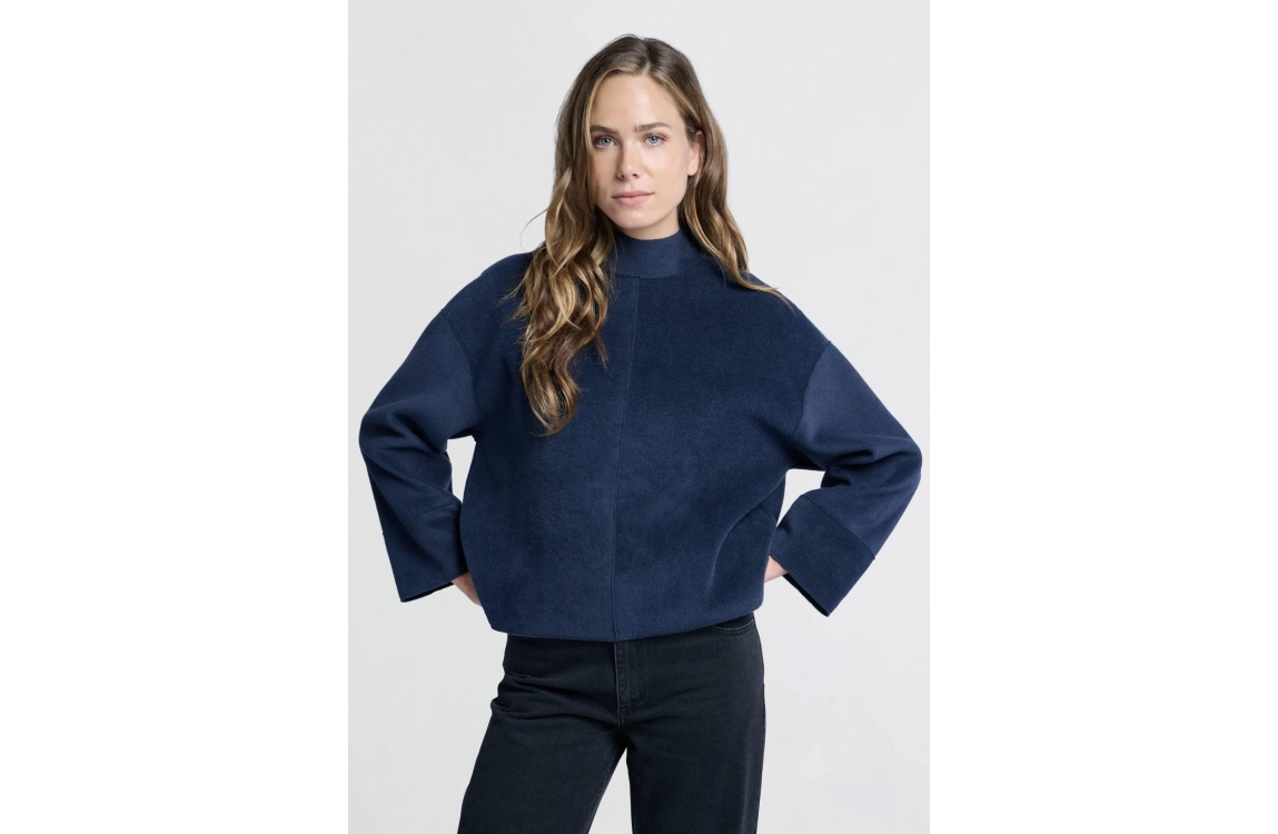 Yaya online trui 01-109072-410. Dit wijdvallend model heeft een turtleneck en lange mouwen. Deze donkerblauwe trui van Yaya is all-over bewerkt met naaddetails en sluit aan de achterzijde door middel van een rits.