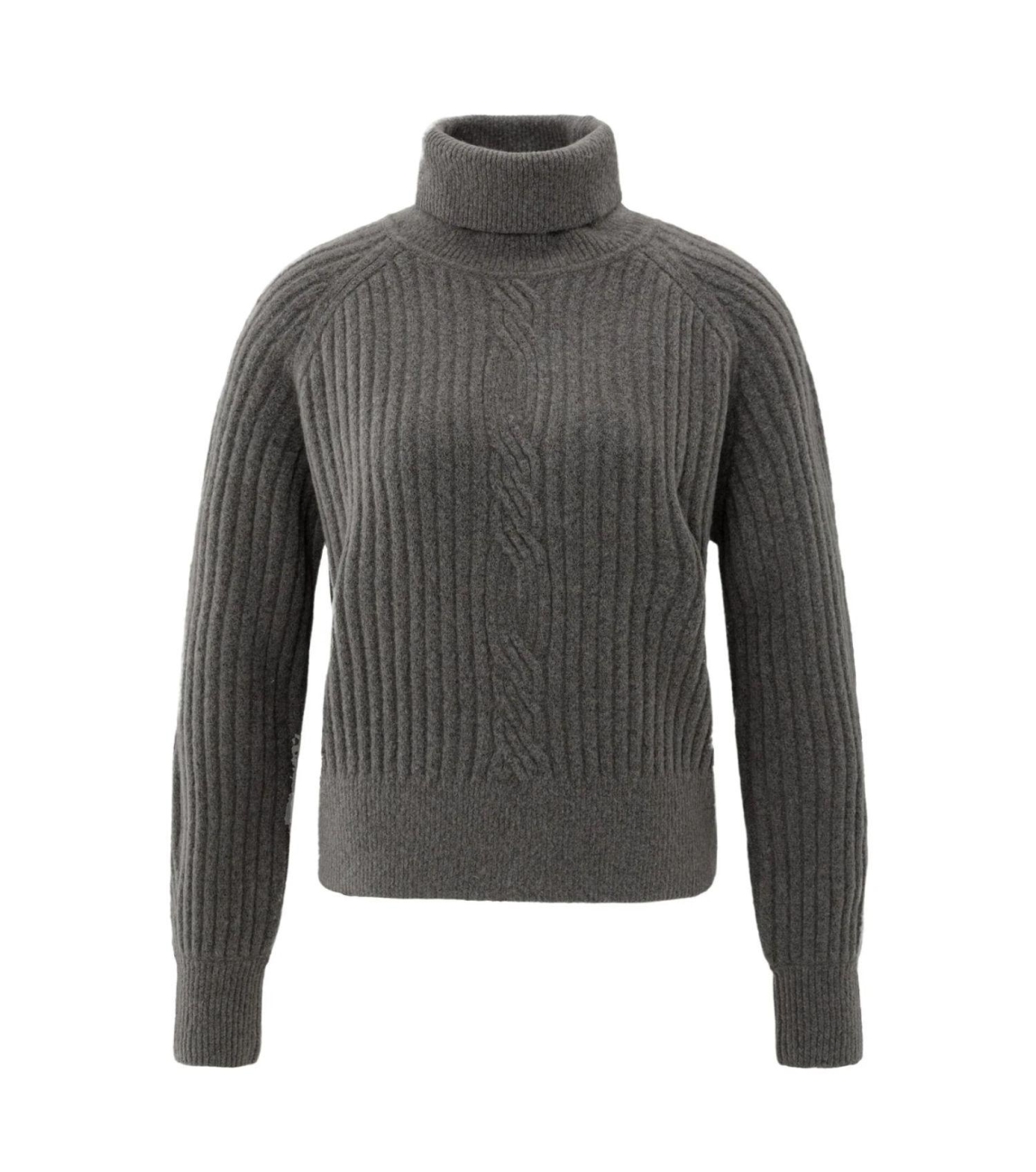 Yaya Sweater with cable detail 990332 dark taupe mel. Dit rechtvallende model is voorzien van een col en heeft lange mouwen. Deze donker grijze sweater van Yaya is voorzien van een rijke ribstructuur en een subtiel kabeldetail middenvoor. Dit model is afgewerkt met ribgebreide boorden.