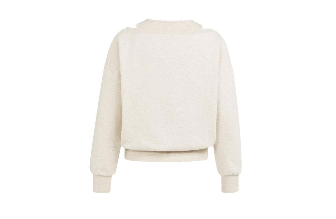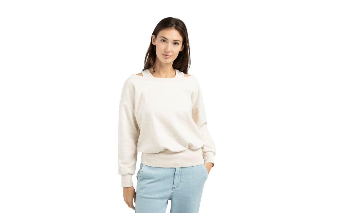 Yaya sweater 01-109116-603 990532. Dit oversized model heeft een dubbele halslijn met verlaagde schoudernaden en lange mouwen. Deze ecrukleurige sweater van Yaya is afgewerkt met ribgebreide boorden.