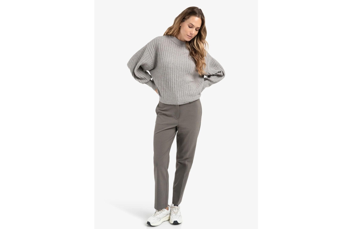 Yaya Trousers with double waistband 990332 Dark taupe grey melYaya Trousers with double waistband 990332 Dark taupe grey melYaya Trousers with double waistband 990332 Dark taupe grey mel