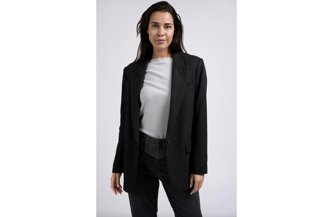 Yaya wool mix oversized blazer. Deze stijlvolle oversized blazer heeft lange mouwen, een klassieke blazerkraag, steekzakken en een sluiting met een enkele knoop. Deze blazer is perfect voor zowel formele als casual gelegenheden.