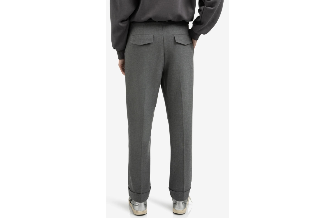 Yaya broek 01-301223-509. Dit rechtvallend model sluit door middel van een knoop en ritsaansluiting en heeft ceintuurlussen. Deze grijze yaya broek is voorzien van twee steekzakken aan de voorzijde en heeft twee decoratieve klepzakken aan de achterzijde.